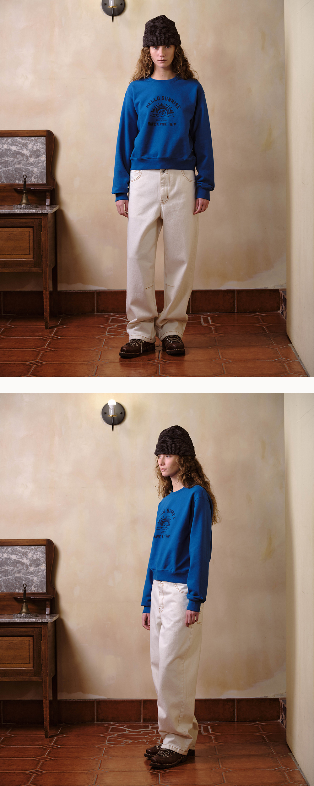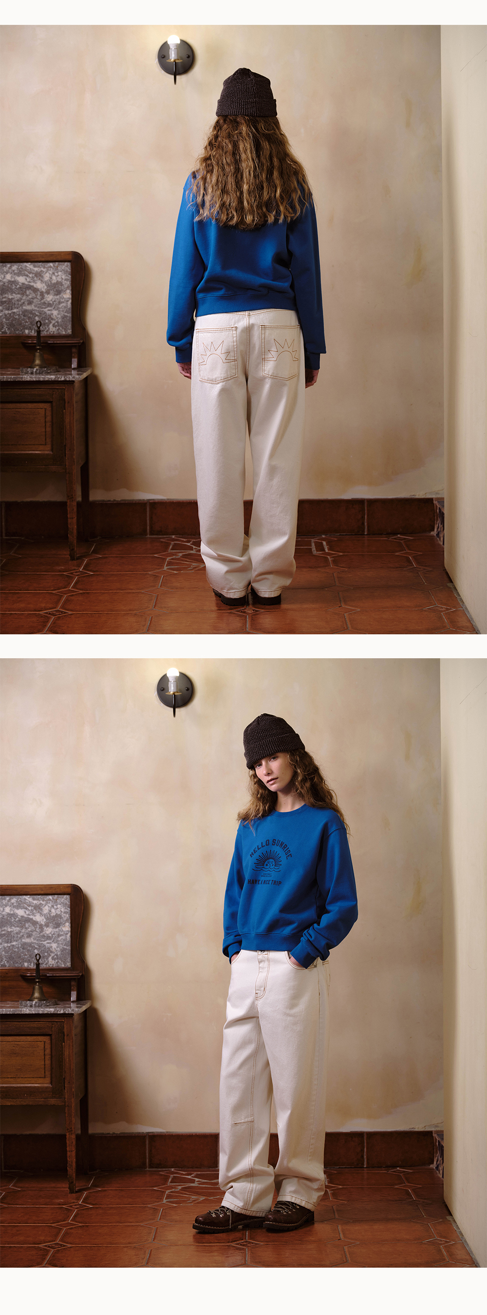 헬로선라이즈 VTG 아치로고가 들어간 스웻셔츠입니다. - 전면 헬로선라이즈 VTG 아치로고 그래픽 - 후면 헬로선라이즈 심볼 자수 처리 - 부드러운 원단의 터치감 - 전체 삼봉 처리하여 내구성을 높임 - 스탠다드 핏의 실루엣 * Model : 174cm / Size : OS * 측정 기준에 따라 1-2cm의 차이가 있을 수 있습니다. * Cotton 100% Made in Korea