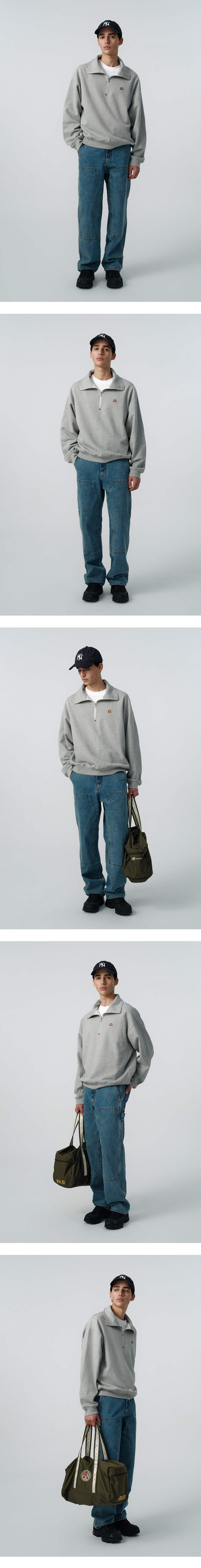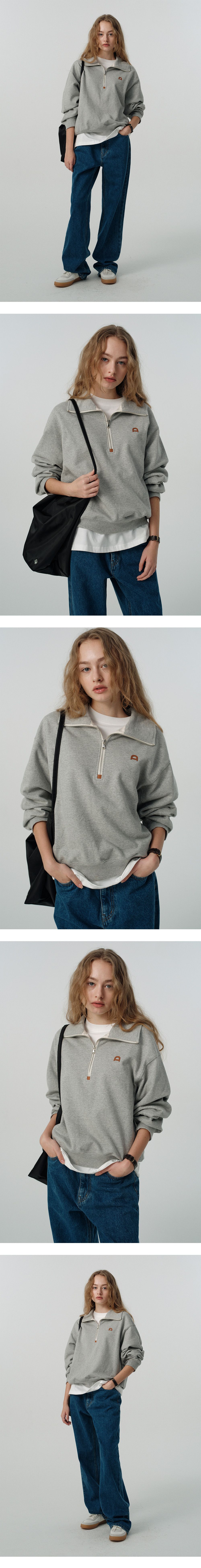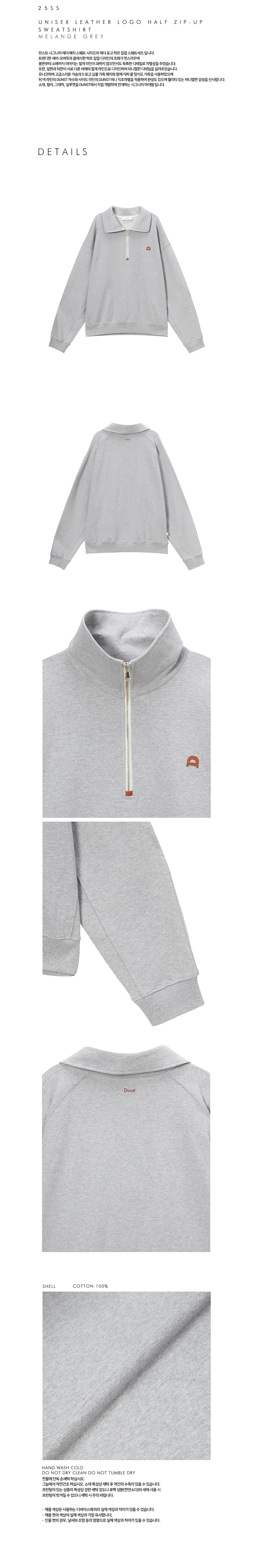 던스트 유니섹스 레더 로고 하프 집업 스웨트셔츠 멜란지 그레이