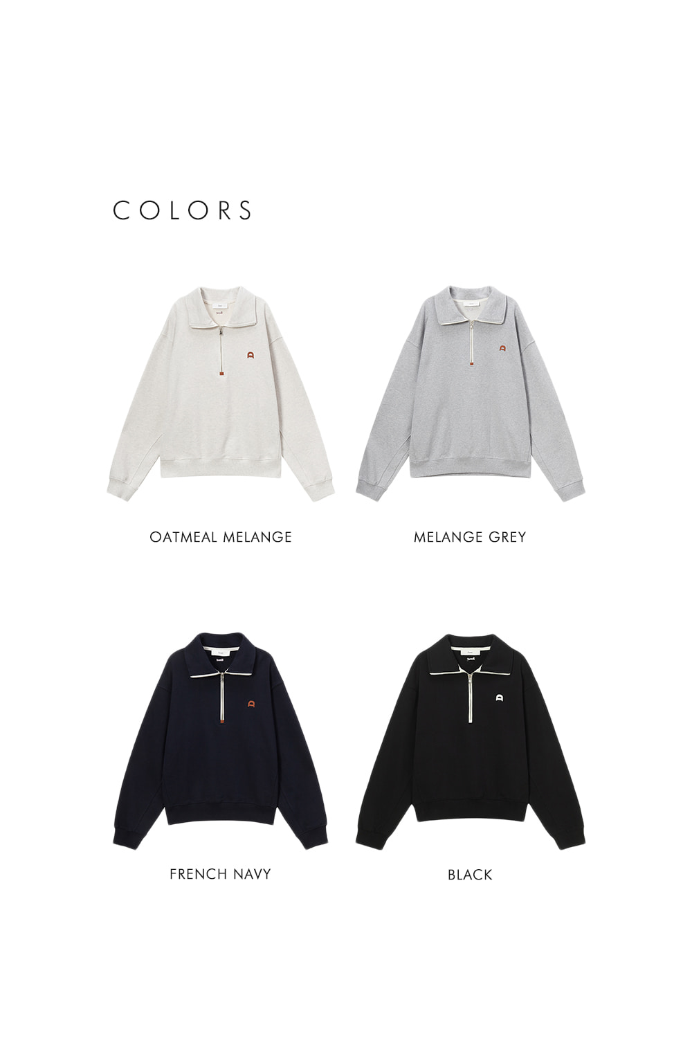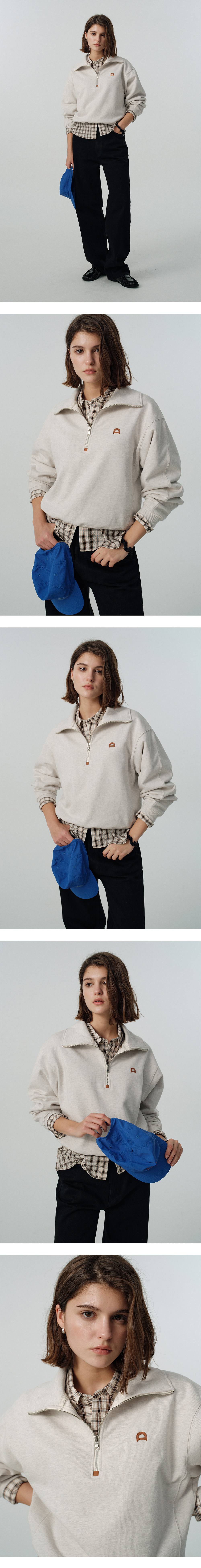 던스트 유니섹스 레더 로고 하프 집업 스웨트셔츠 오트밀 멜란지