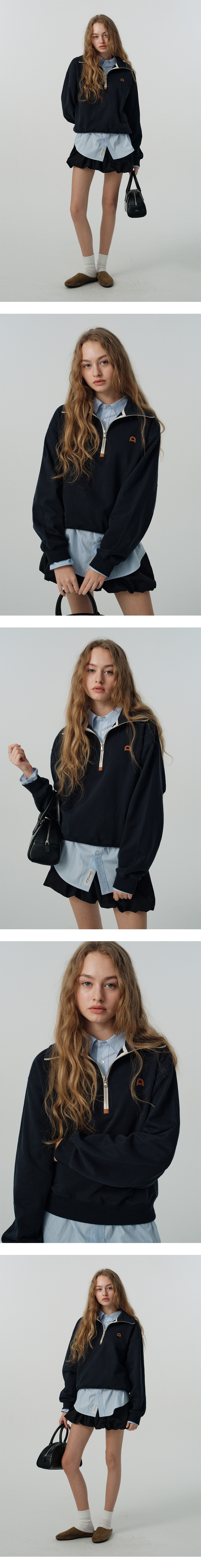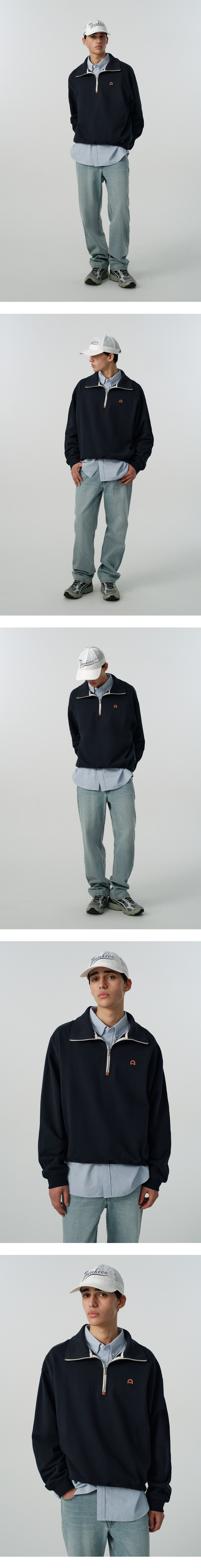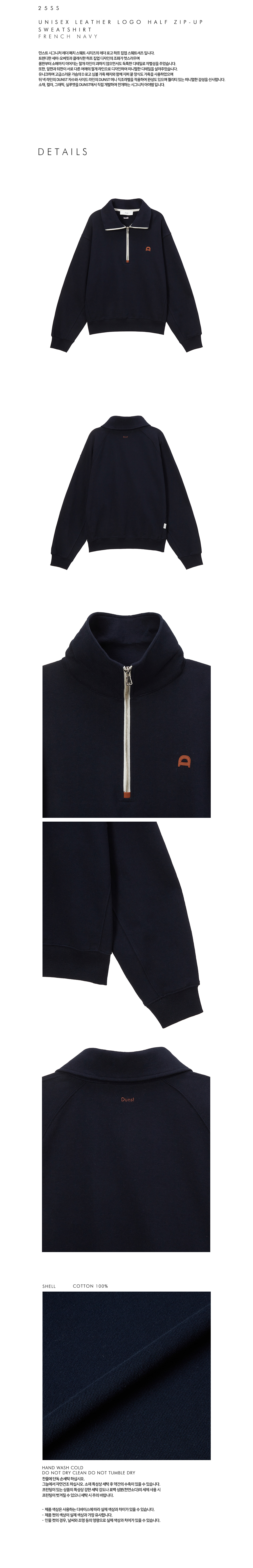 던스트 유니섹스 레더 로고 하프 집업 스웨트셔츠 프렌치 네이비