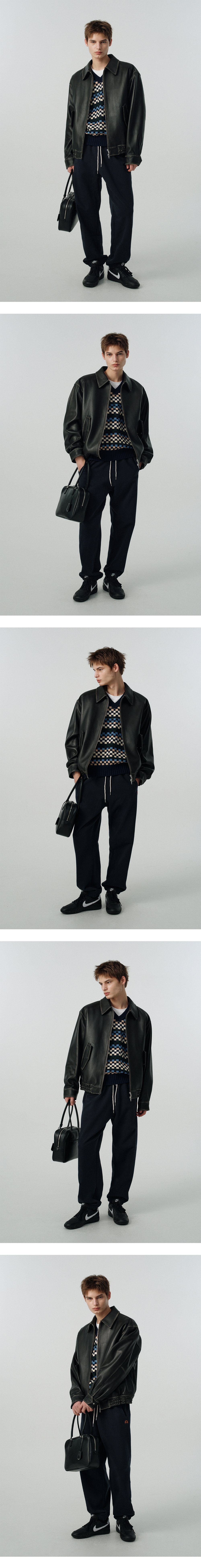 던스트 유니섹스 레더 로고 스웨트 팬츠 프렌치 네이비