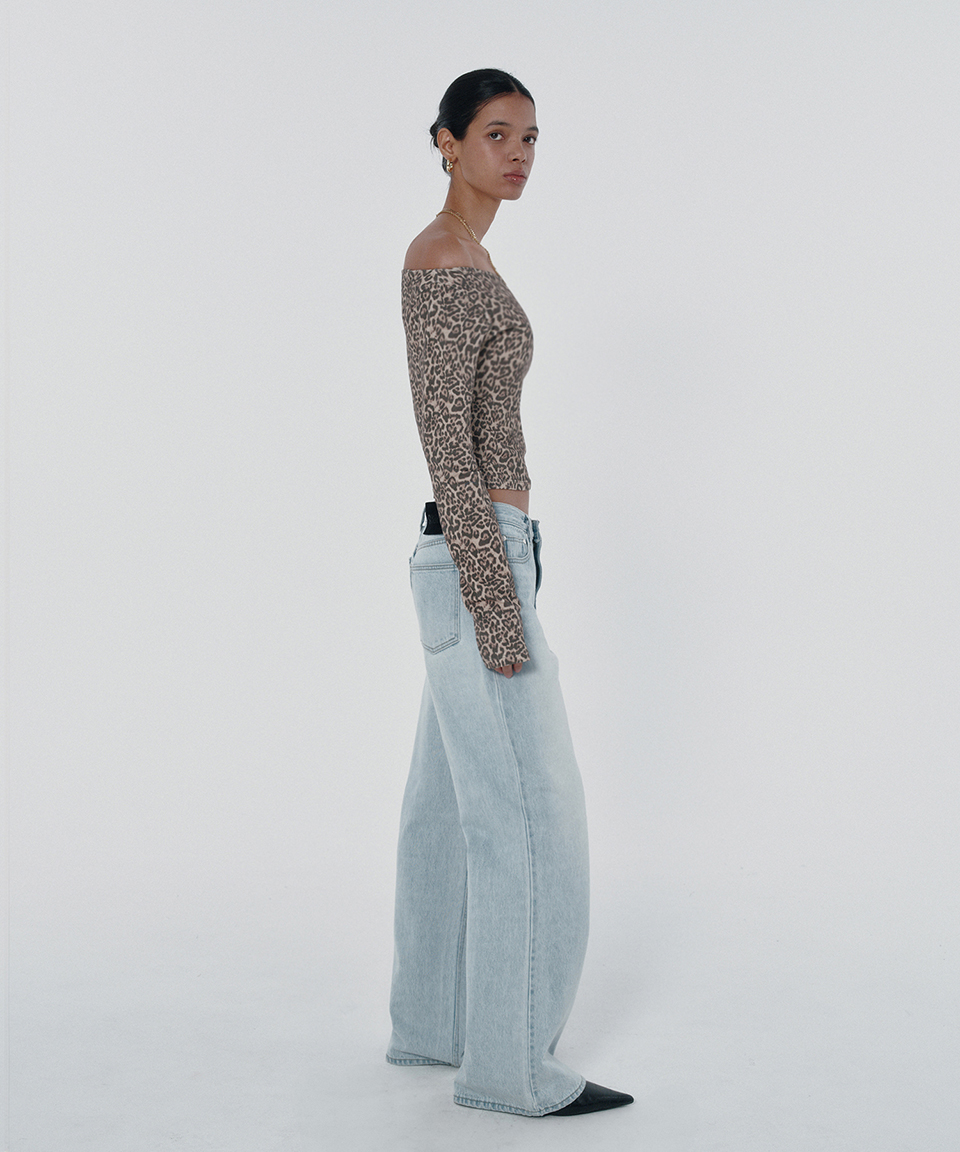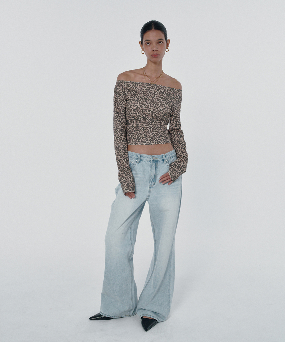 스웨이드 패턴 크롭 티 레오파드