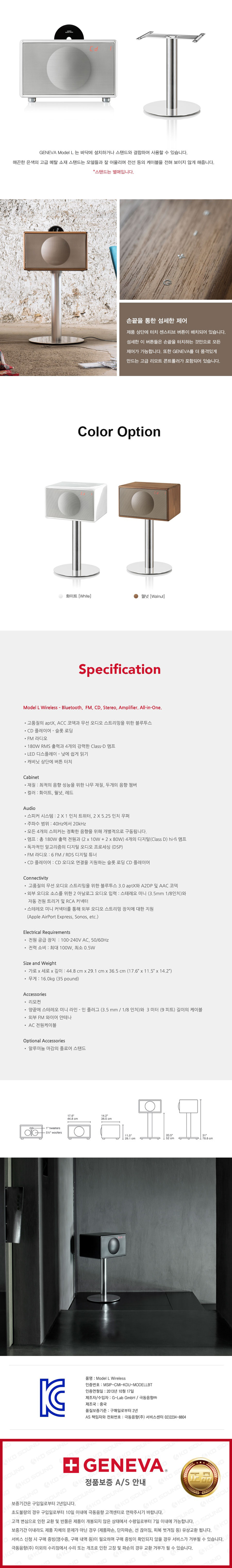 제네바 모델 L 화이트 + 스탠드 포함 (극동음향 정식 발매 제품)
