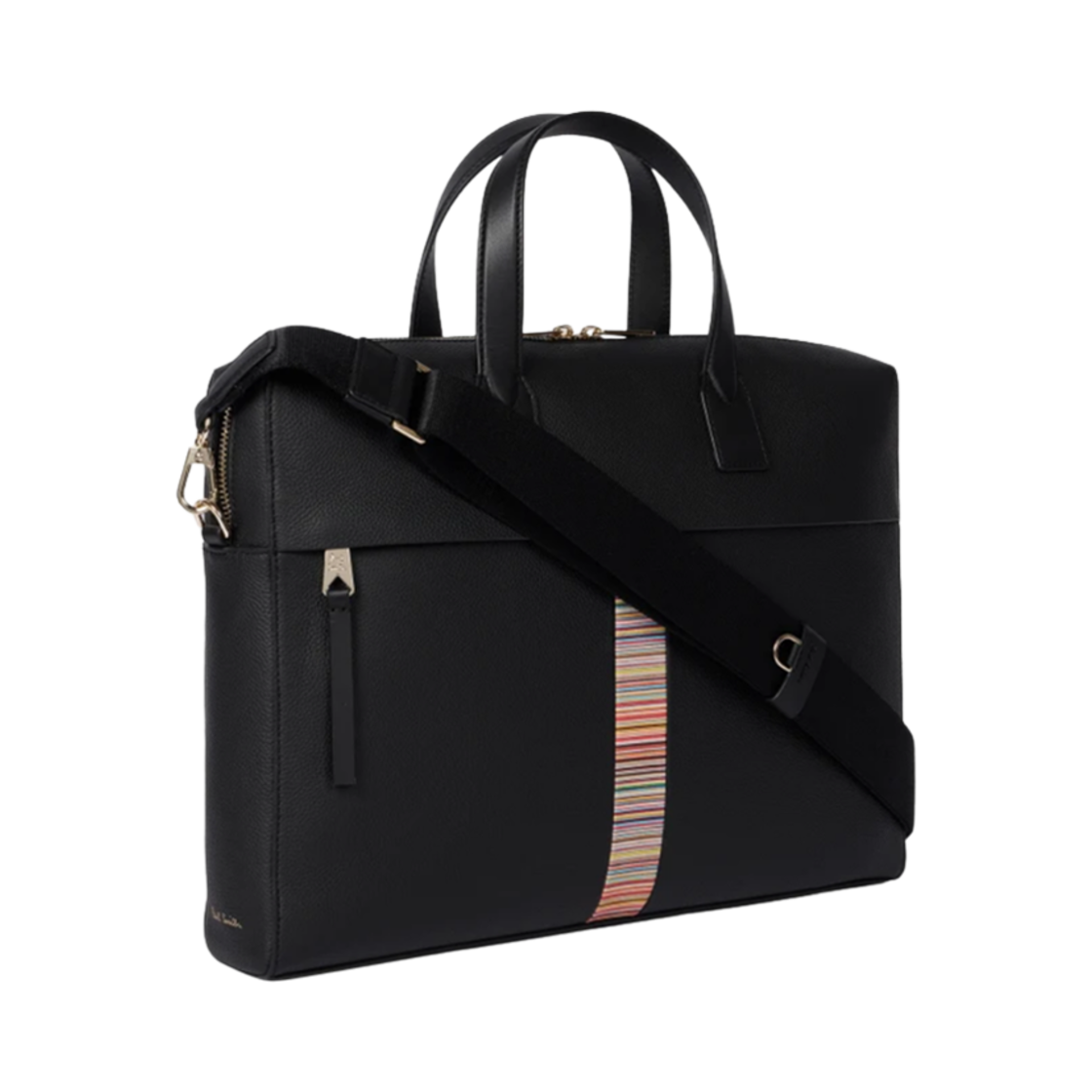 폴 스미스 레더 시그니쳐 스트라이프 트림 폴리오 블랙