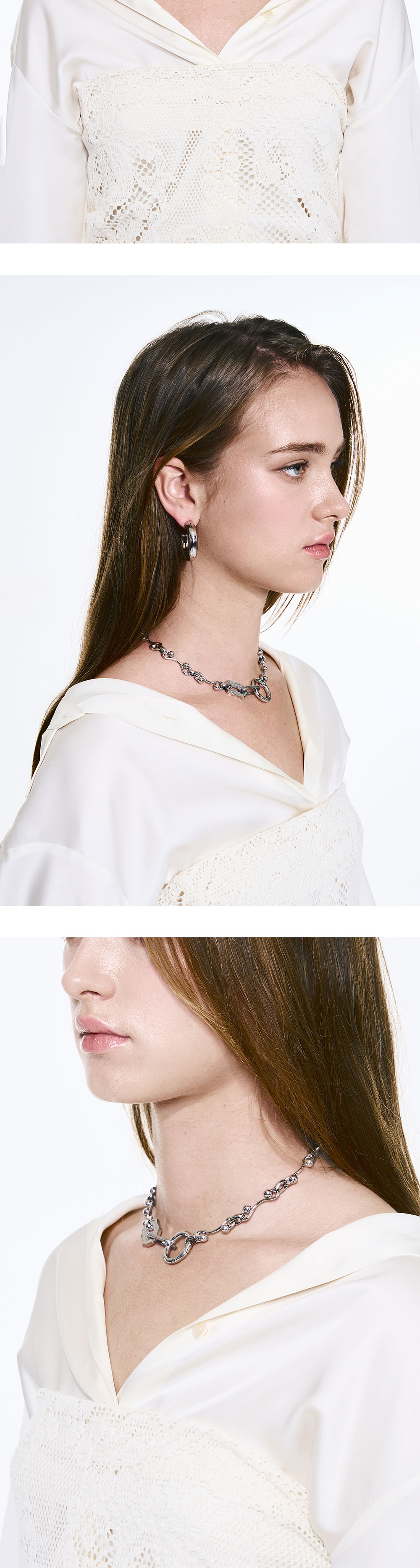 센티멍 넘버 597 웨이브 2홀드 볼 네크리스 실버