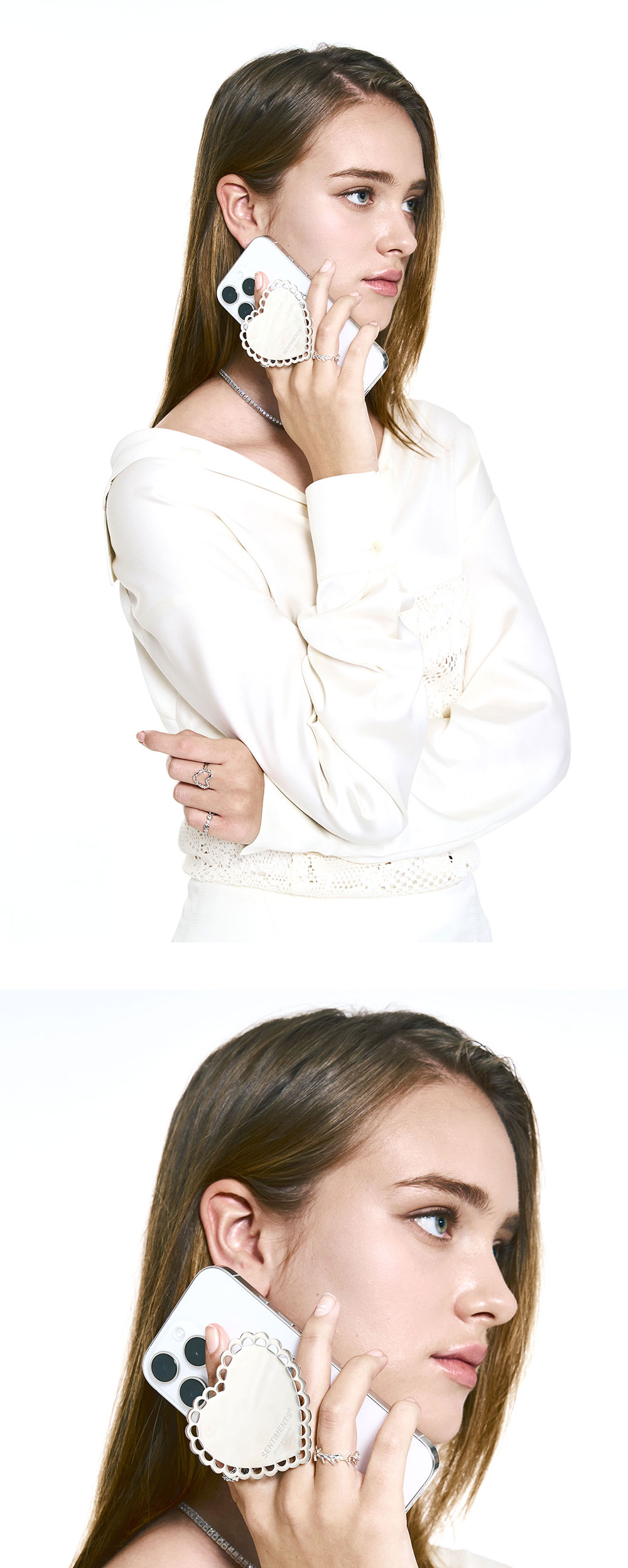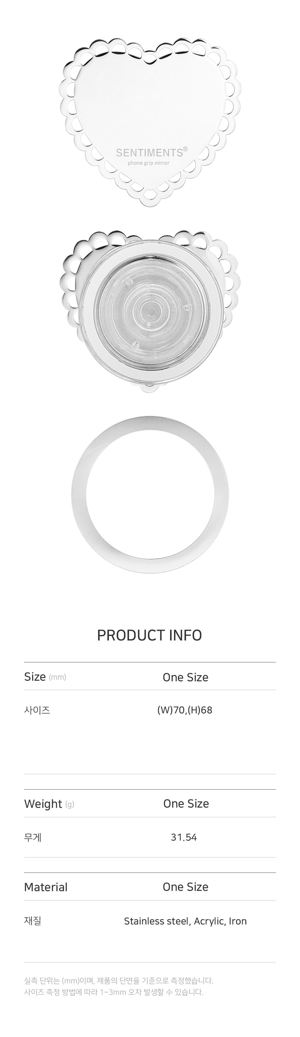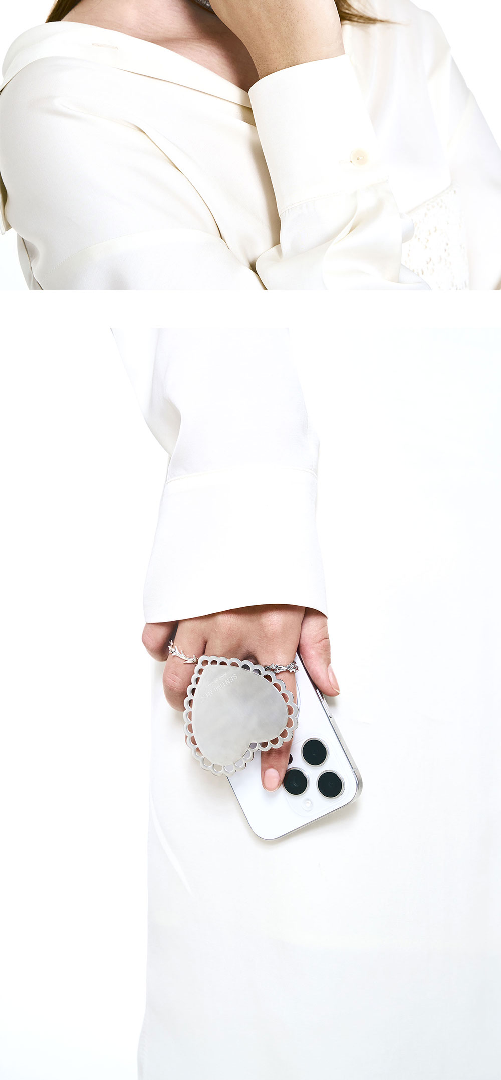 센티멍 넘버 602 하트 미러 폰 그립 실버