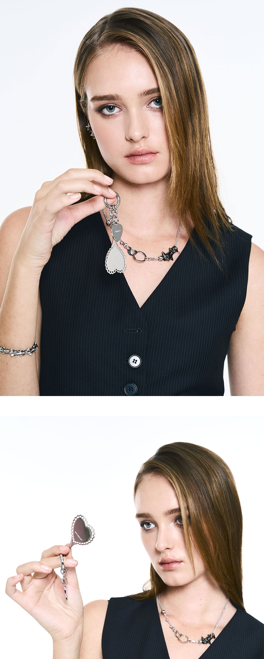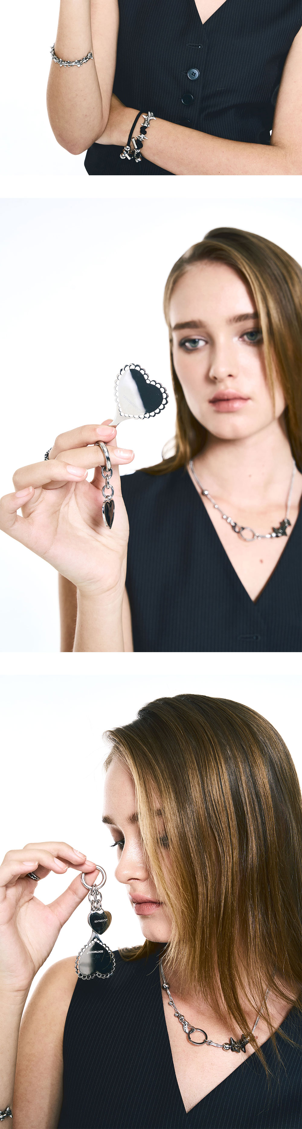 센티멍 넘버 607 미니 하트 미러 키링 실버