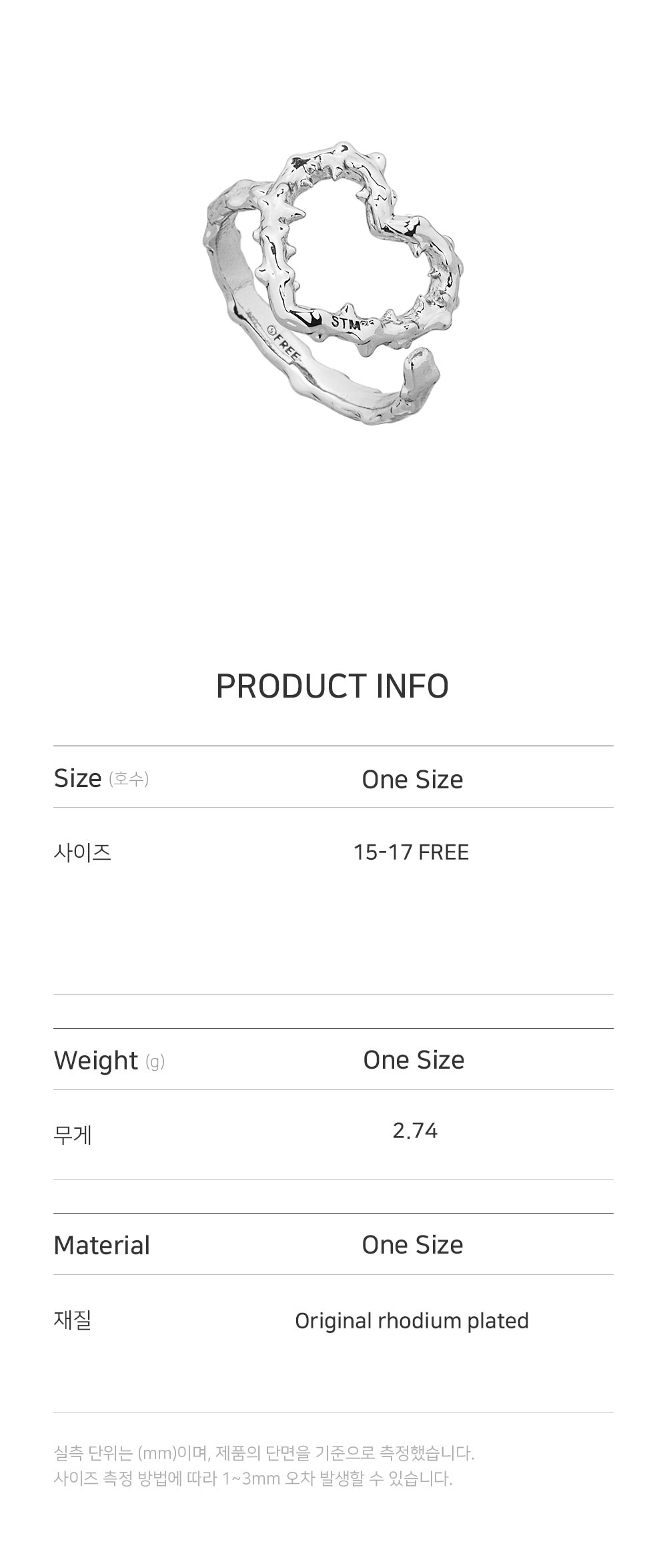 센티멍 넘버 611 가시 하트 링 실버