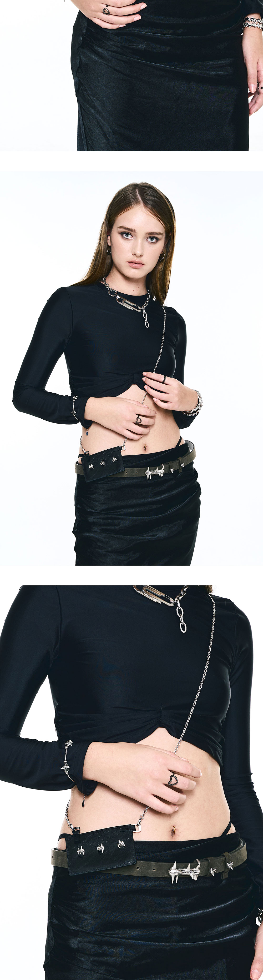 센티멍 넘버 629 가시 레더 카드 지갑 크로스 네크리스 버니쉬