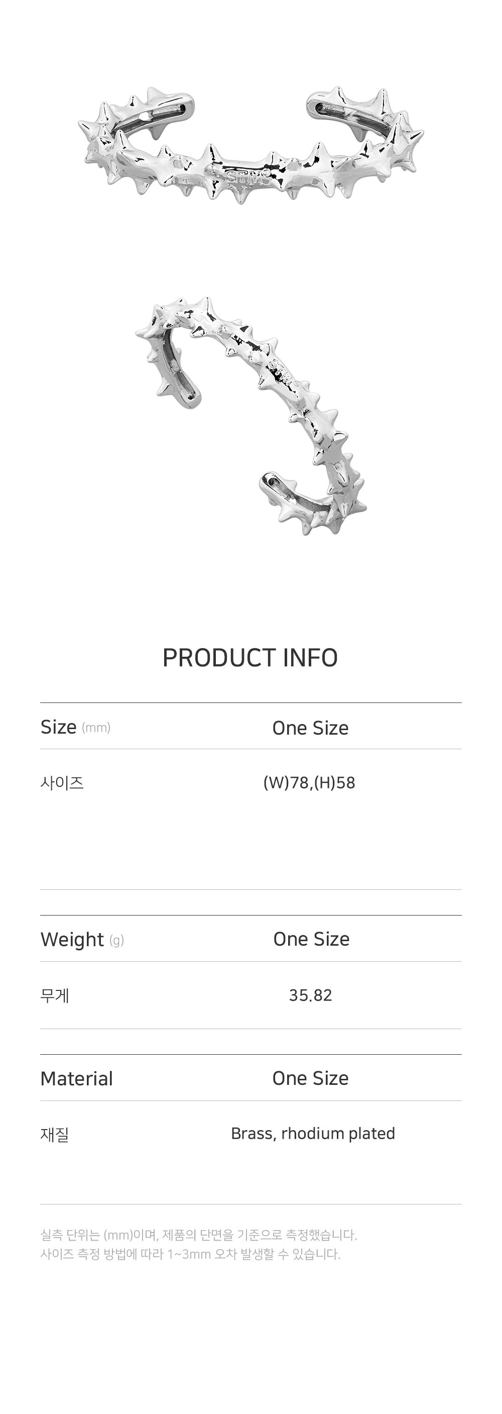 센티멍 넘버 630 가시 뱅글 브레이슬렛 실버