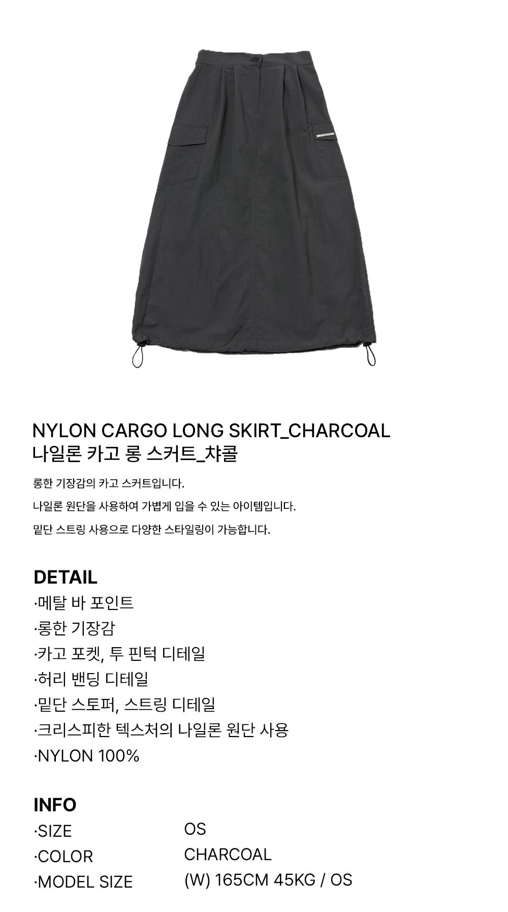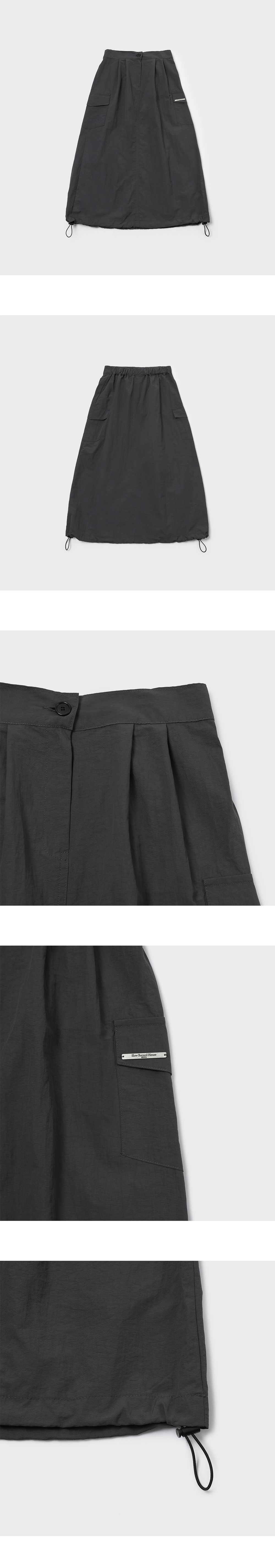 슬로우 레코드 하우스 나일론 카고 롱 스커트 챠콜