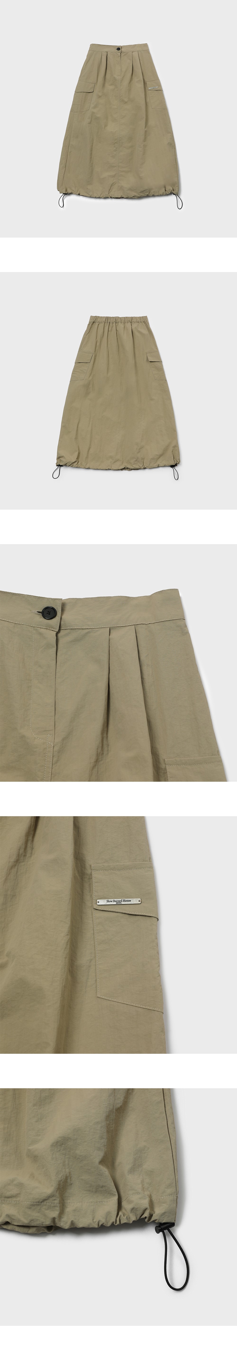 슬로우 레코드 하우스 나일론 카고 롱 스커트 베이지