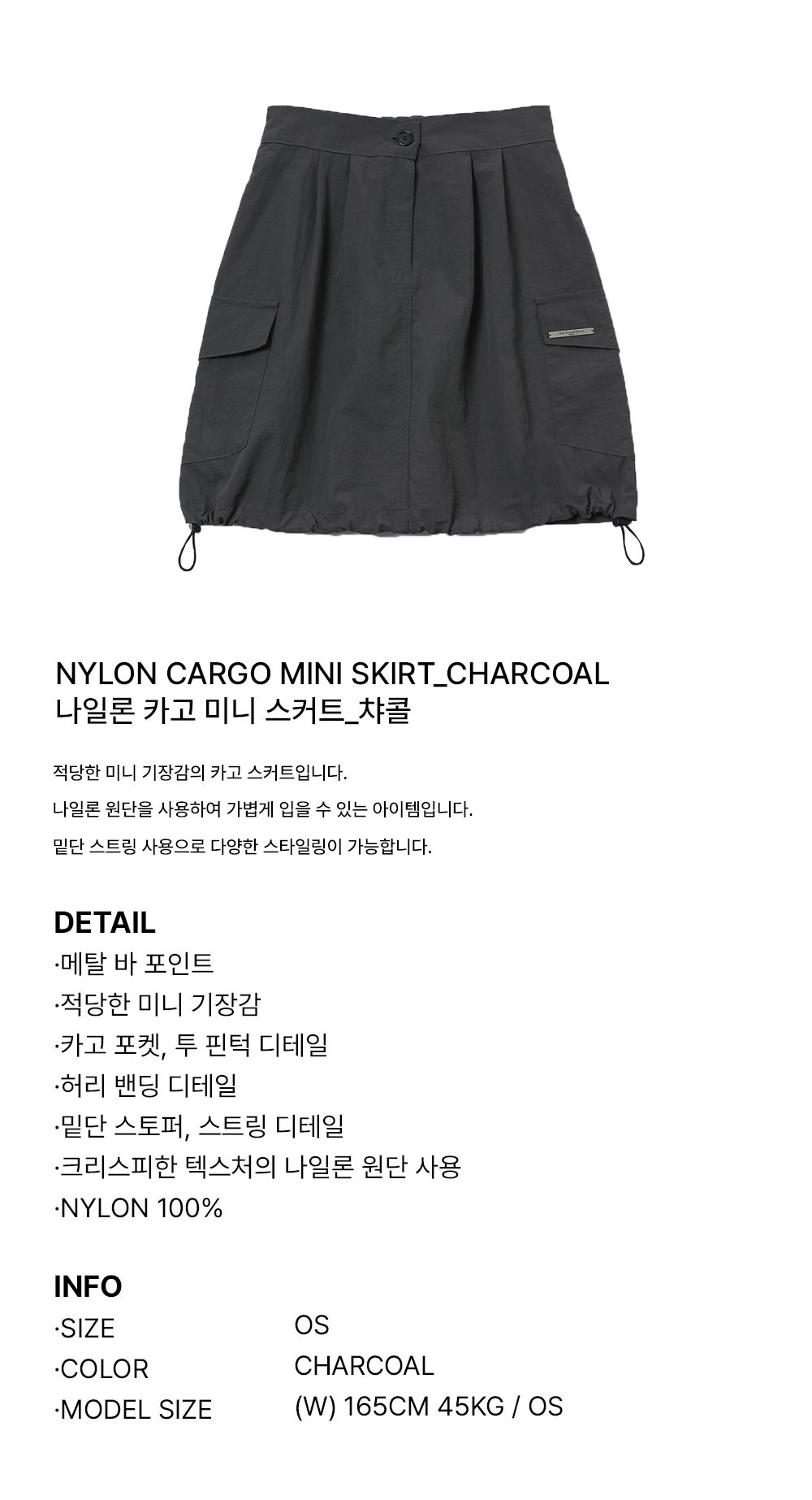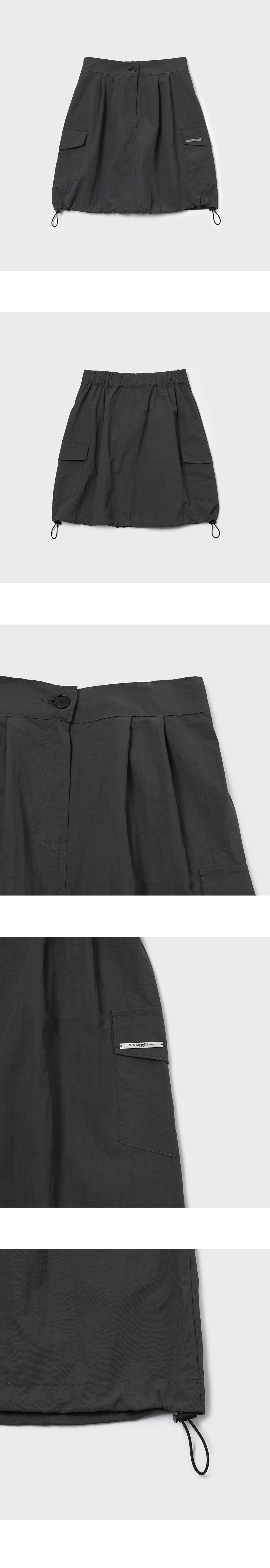 슬로우 레코드 하우스 나일론 카고 미니 스커트 챠콜