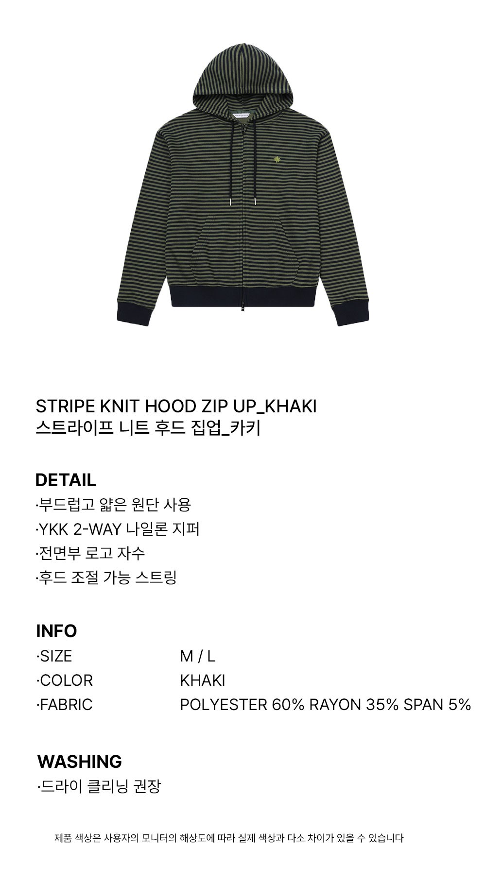 슬로우 레코드 하우스 스트라이프 니트 후드 집업 카키