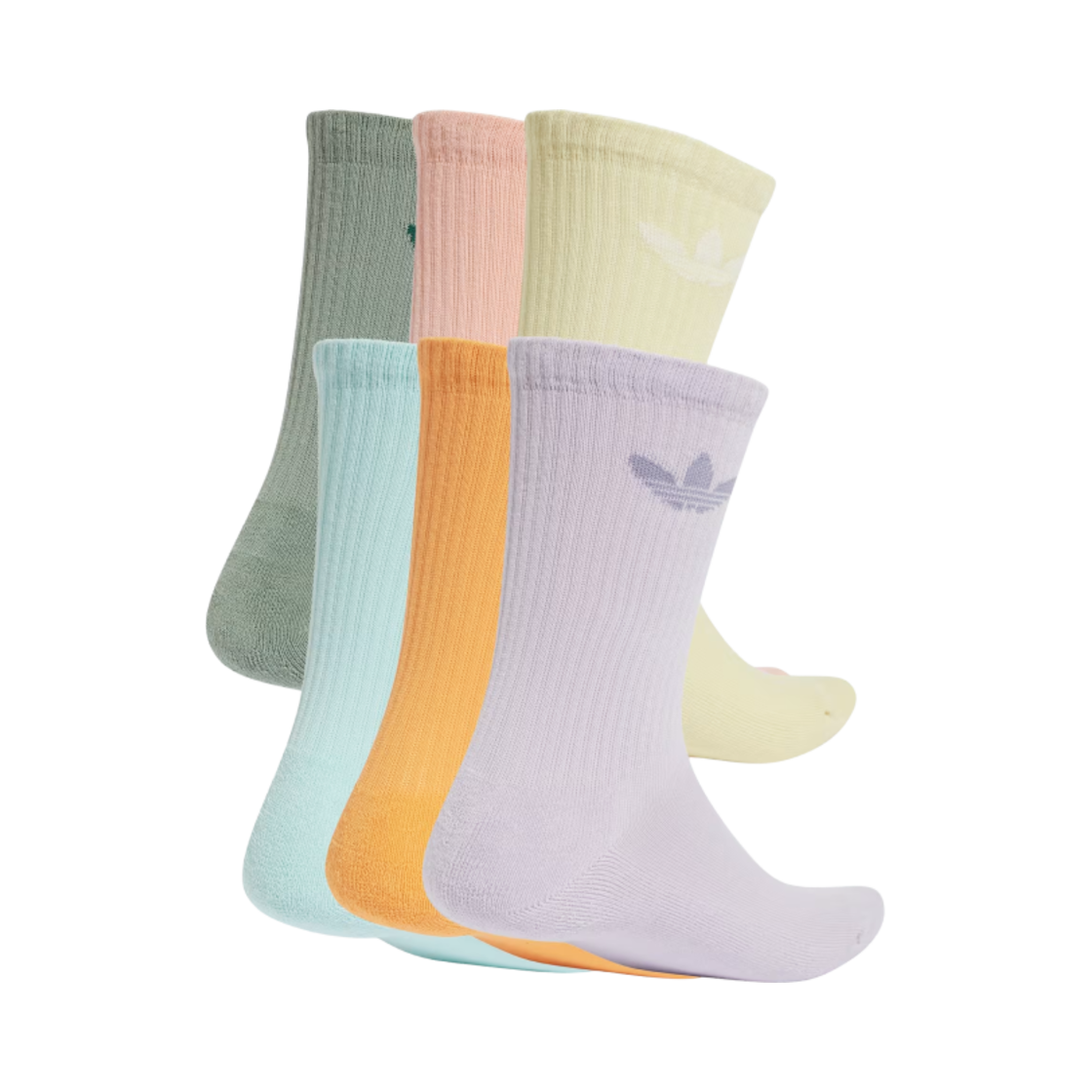 Adidas Trefoil Cushion Crew Socks Silver Green Glow Pink (6 Pack)