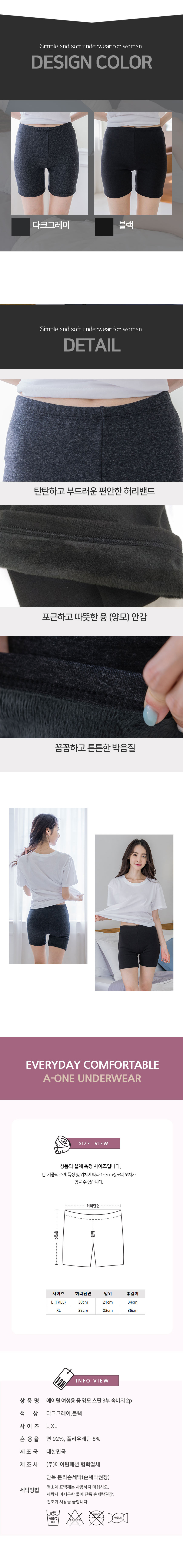 [3% 적립] (W) 에이원 융 양모 스판 3부 속바지 2팩 다크그레이
