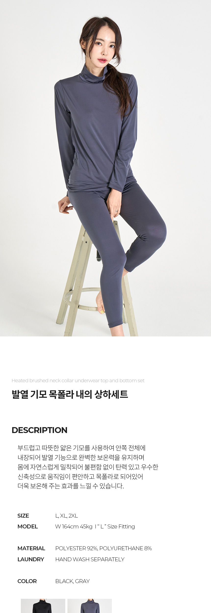[3% 적립] (W) Aone Thermal Fleece Turtleneck Innerwear Top And Bottom Set Black