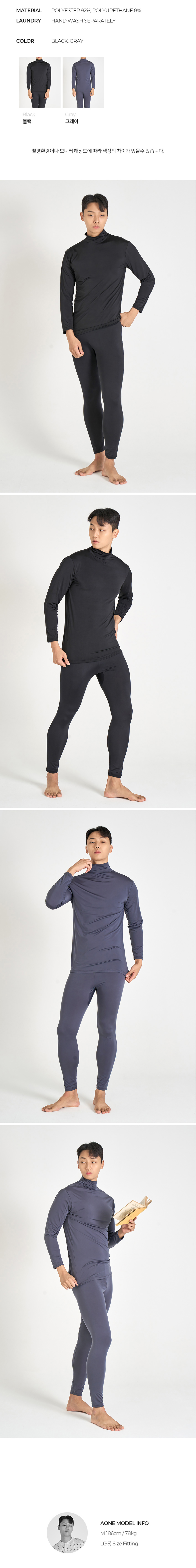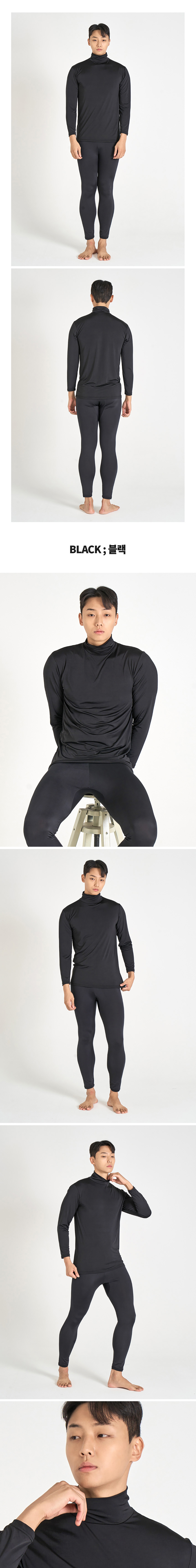 [3% 적립] Aone Thermal Fleece Turtleneck Top And Bottom Set Black