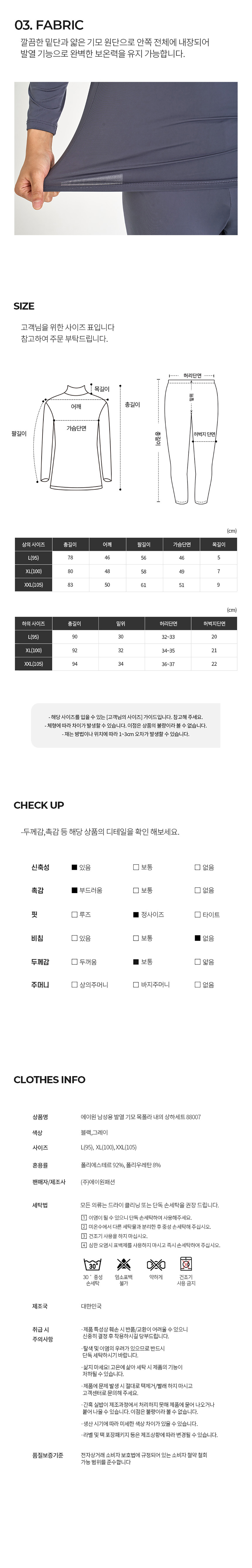 [3% 적립] 에이원 발열 기모 목폴라 내의 상하세트 블랙
