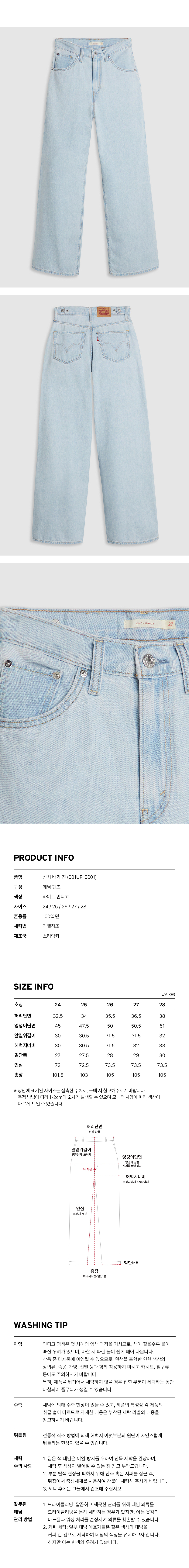 리바이스 우먼 신치 배기 진 라이트 인디고