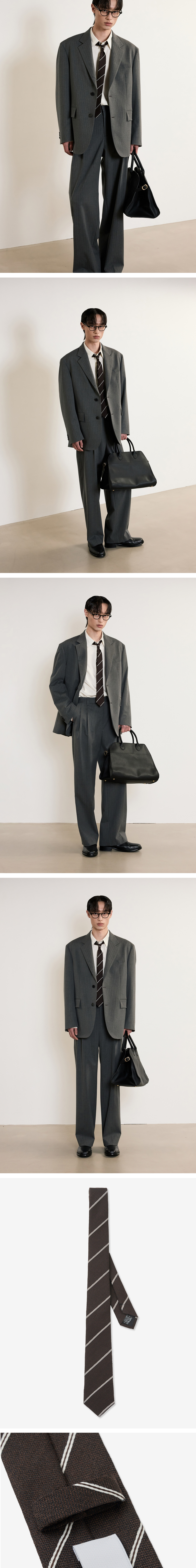 티엔지티 울블랜드 스트라이프 슬림 타이 버건디