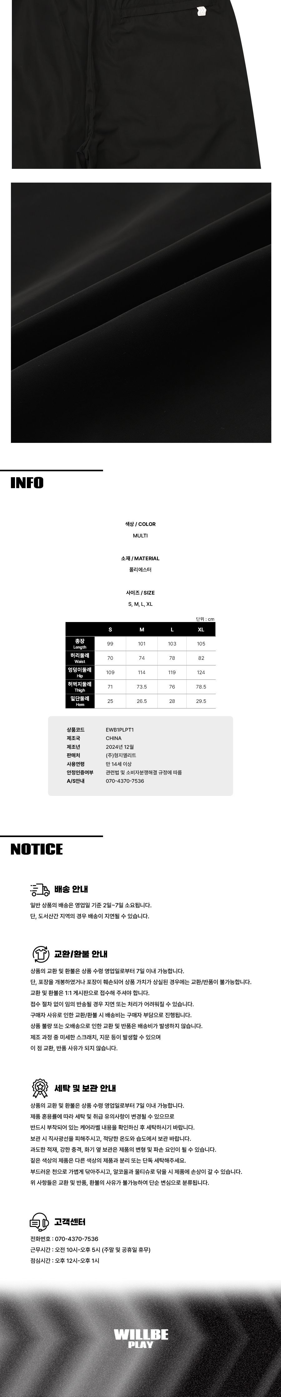 | 허리 둘레 | 엉덩이 둘레 | 허벅지 둘레 | 밑단 둘레 | 총장 |