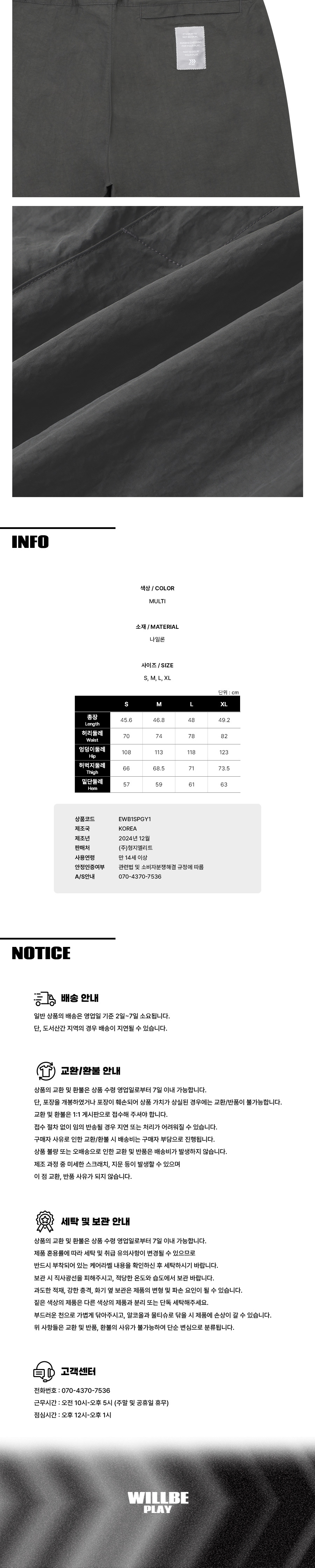 | 허리 둘레 | 엉덩이 둘레 | 허벅지 둘레 | 밑단 둘레 | 총장 |