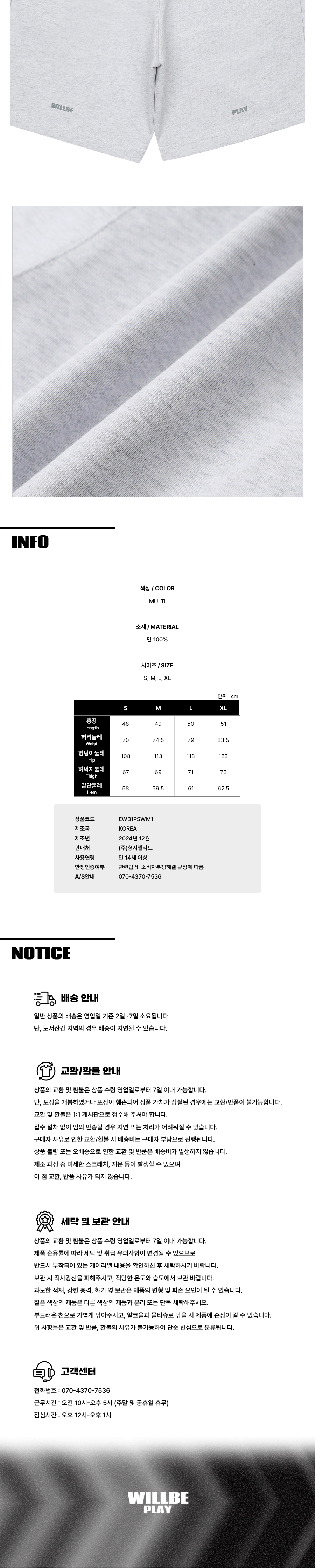 | 허리 둘레 | 엉덩이 둘레 | 허벅지 둘레 | 밑단 둘레 | 총장 |