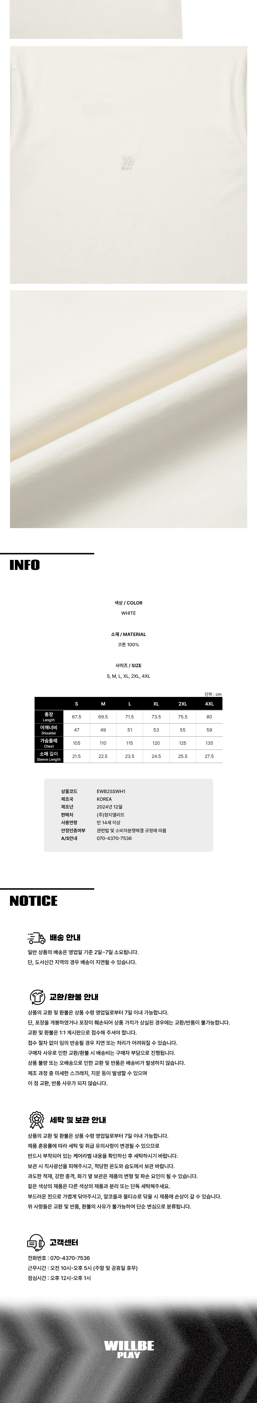 | 가슴둘레 | 어깨너비 | 소매 길이 | 총장 |