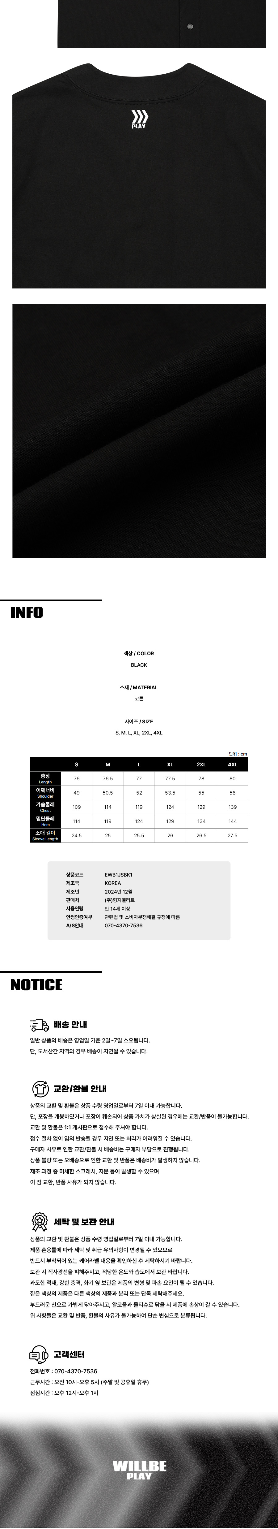 | 가슴둘레 | 어깨너비 | 밑단 둘레 | 소매 길이 | 총장 |