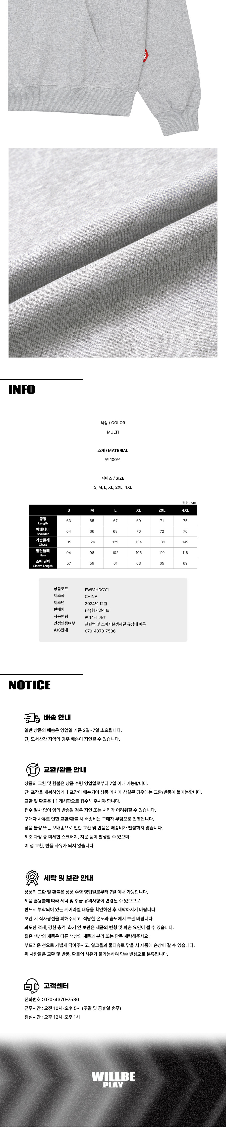 | 가슴둘레 | 어깨너비 | 밑단 둘레 | 소매 길이 | 총장 |