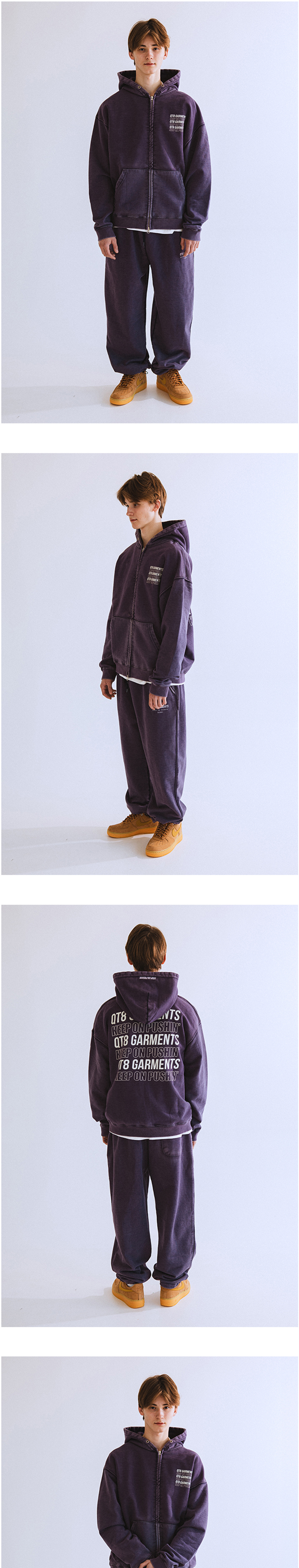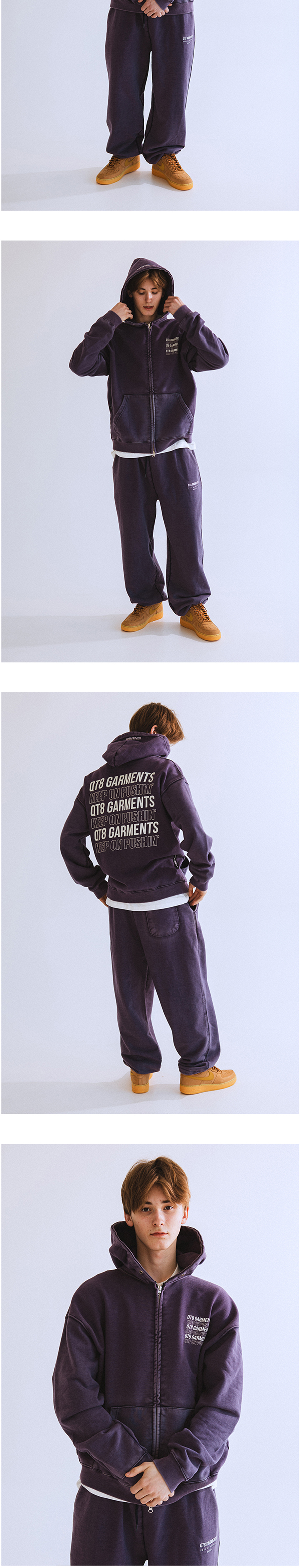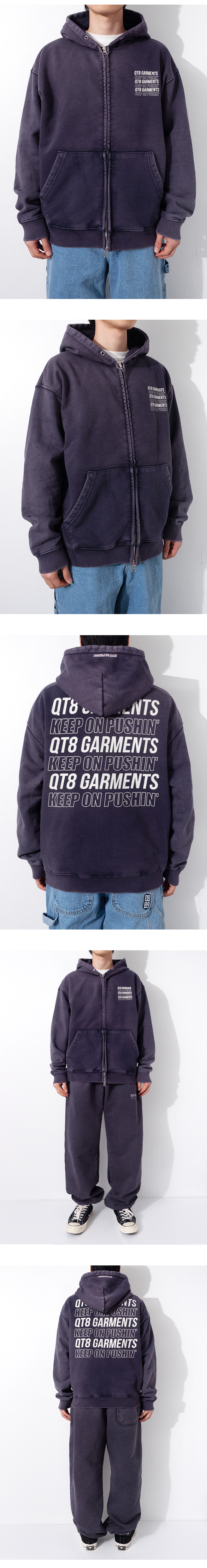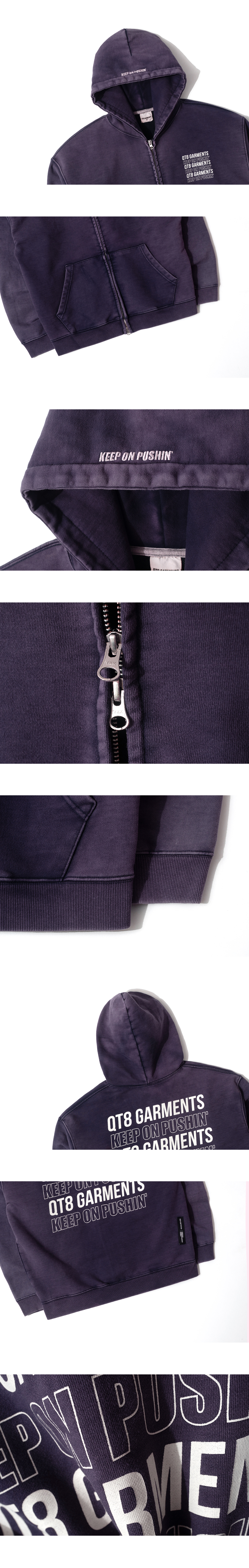 큐티에잇 가먼츠 슬로건 워시드 집업 후디 네이비