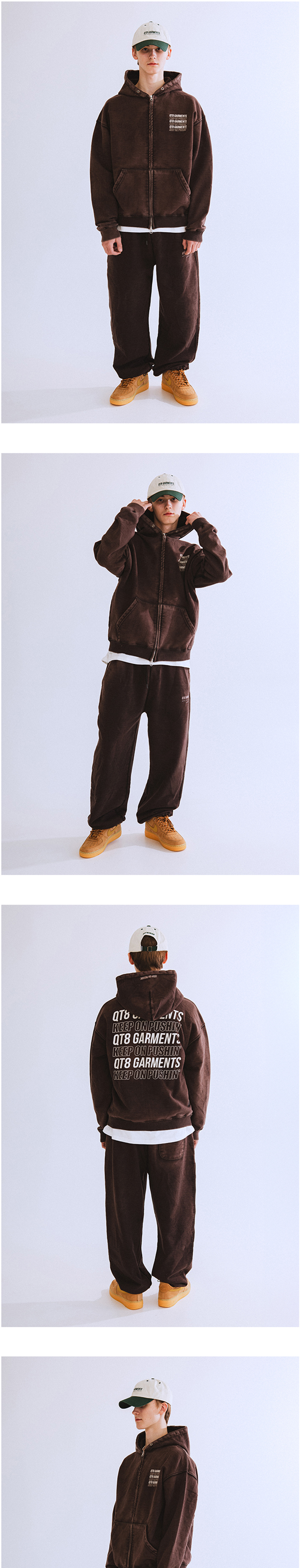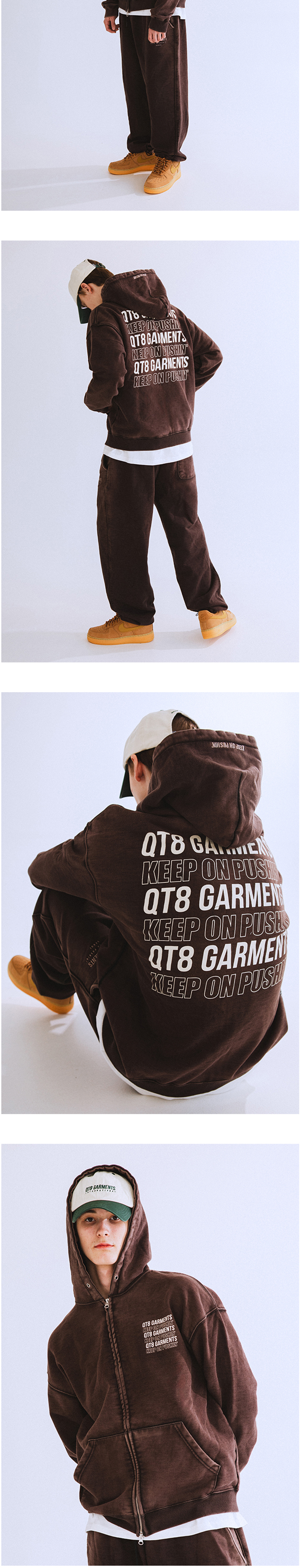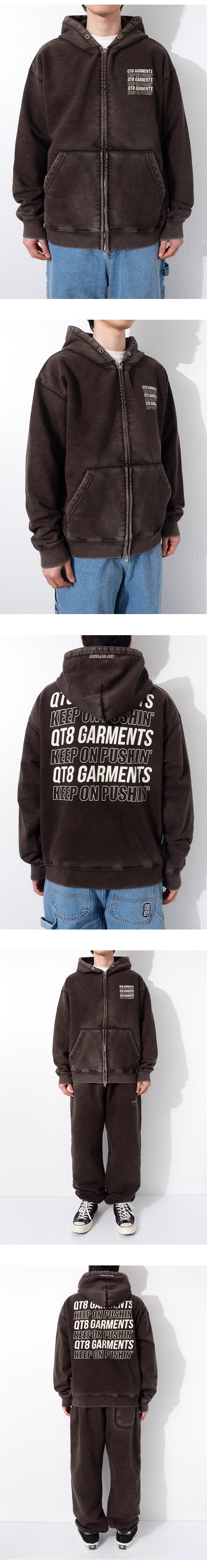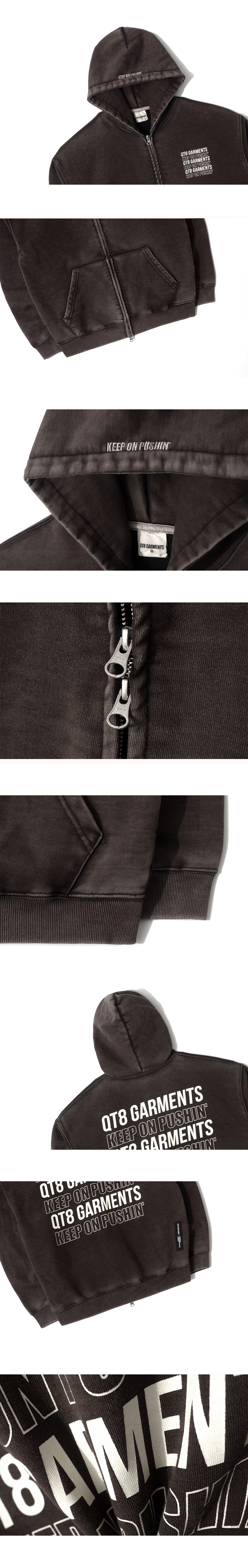 큐티에잇 가먼츠 슬로건 워시드 집업 후디 블랙