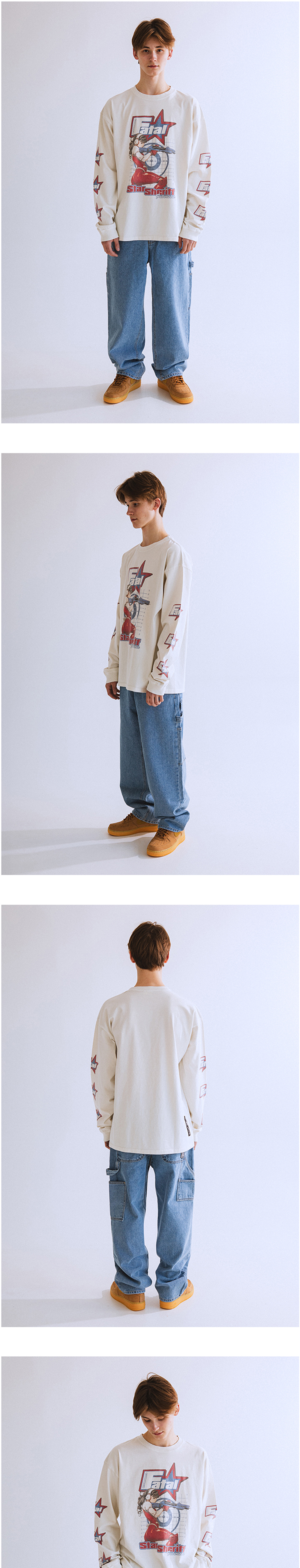 QT8 GARMENTS Star Sheriff EC Washed Long Sleeve Ecru