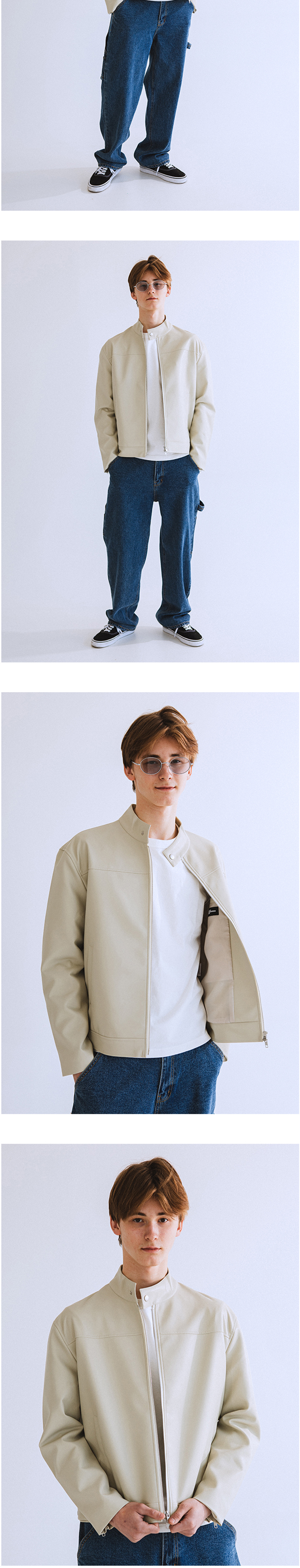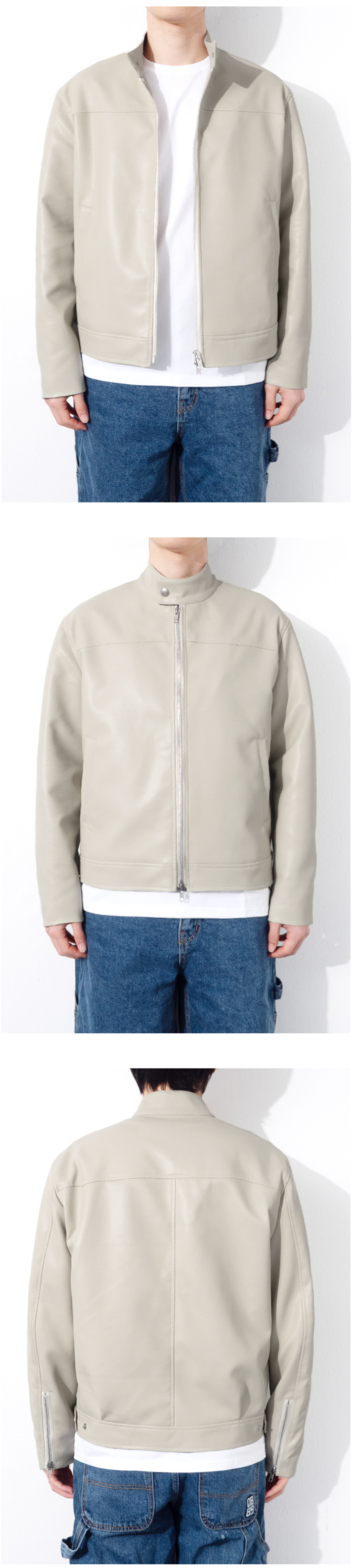 큐티에잇 가먼츠 신세틱 레더 모터 자켓 크림