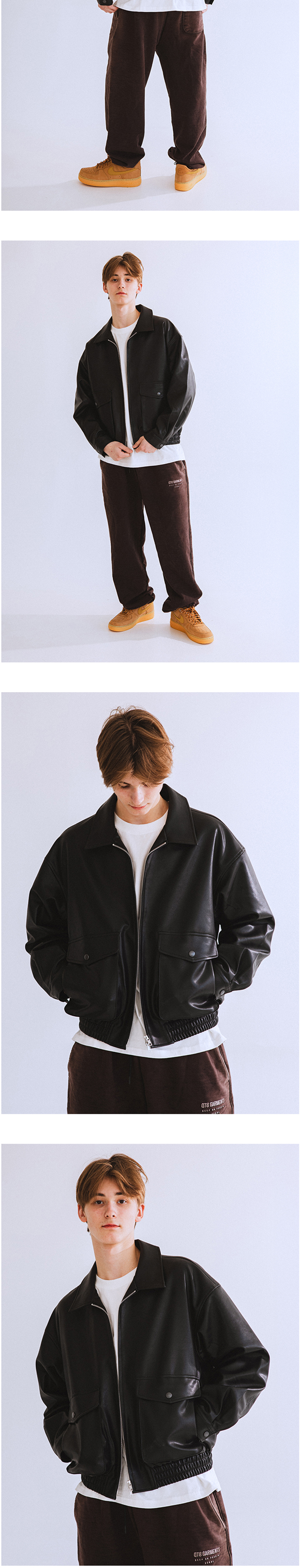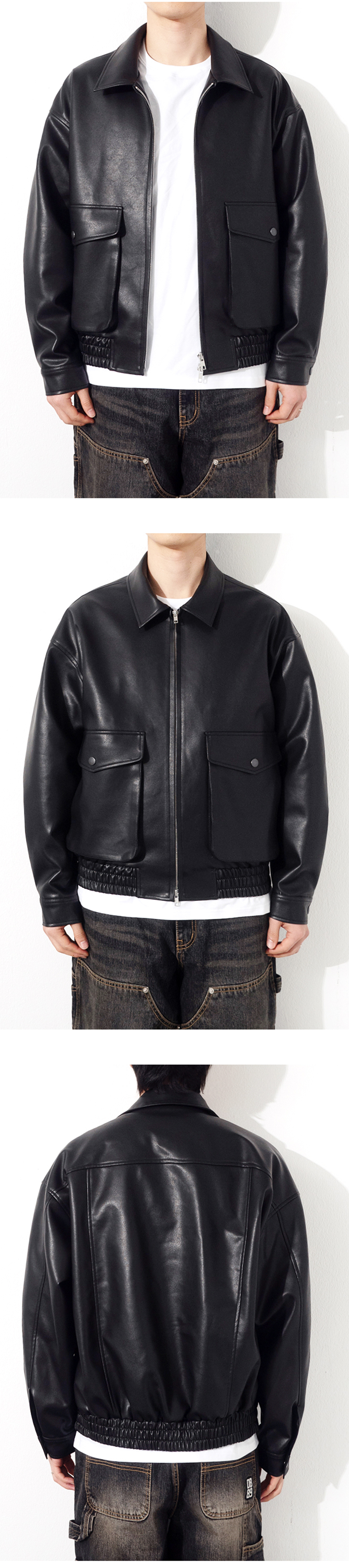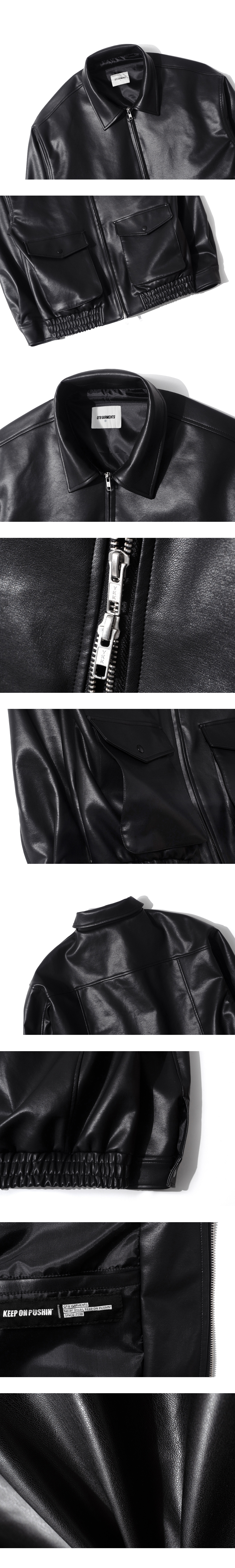 큐티에잇 가먼츠 신세틱 레더 포켓 자켓 블랙