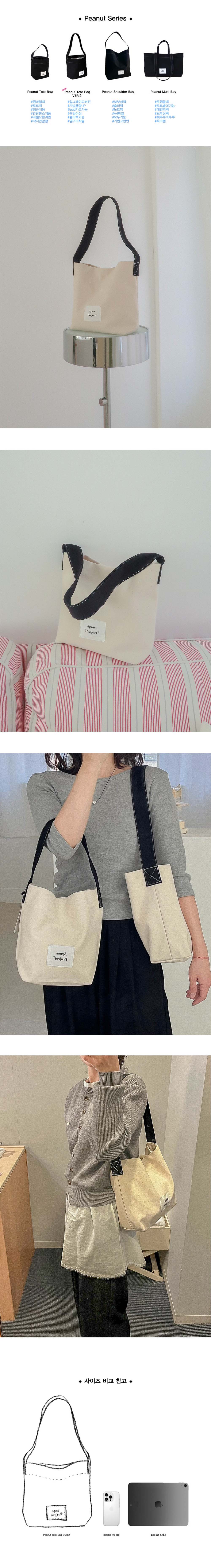 아그네스프로젝트의 스테디셀러 백 Peanut Tote Bag의 SIZE UP Ver. 2020년도 첫 출시 이후 많은 사랑을 받았고, 그동안 많은 고객님들의 요청이 있었는데요. 고객님들의 니즈를 반영하여 탄탄함은 그대로! 사이즈는 좀 더 키우고, 핸들은 기존 토트에서 숄더까지 더 여유롭게 사이즈가 업그레이드 되었습니다. 기존 Peanut Tote Bag보다 여유로운 사이즈와 여유로운 숄더로 사용하실 수 있으며, 컬러는 Peanut Tote Bag의 베스트컬러인 블랙, 레드, 내추럴, 레몬 4컬러에 아이스블루 1컬러가 새로 추가되었습니다. [Size] (W)23cm X (H)24 X (D)10cm 핸들길이 68cm 193g 'Peanut Series' 는 4가지 사이즈로 구성되어 있으니 사이즈 별 다양하게 활용해 보세요.
