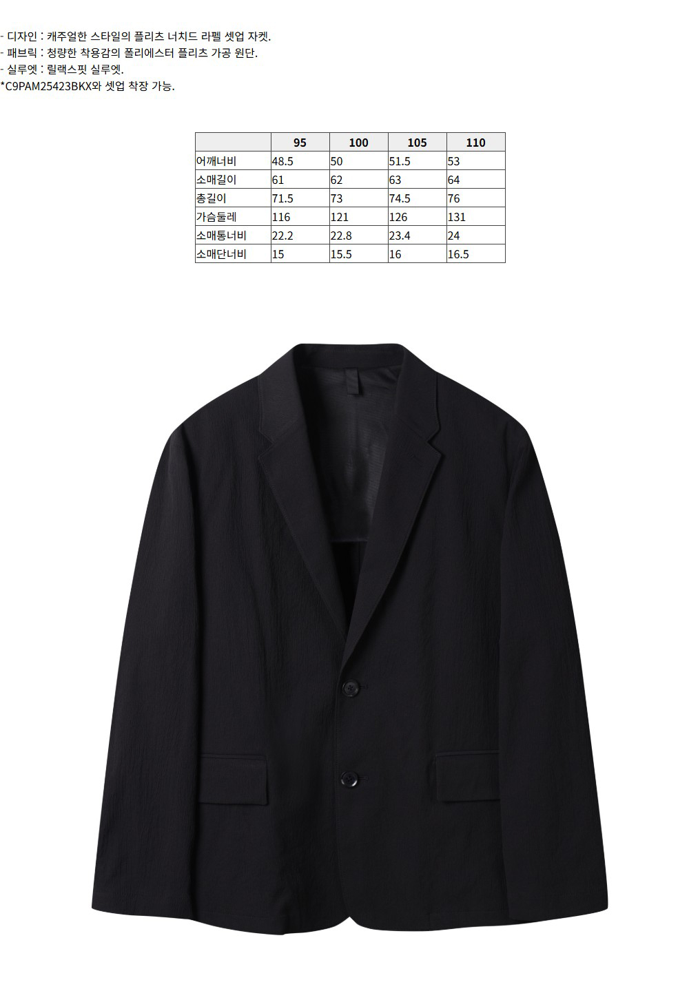 커스텀멜로우 아울렛 릴렉스 핏 플리츠 셋업 자켓 블랙