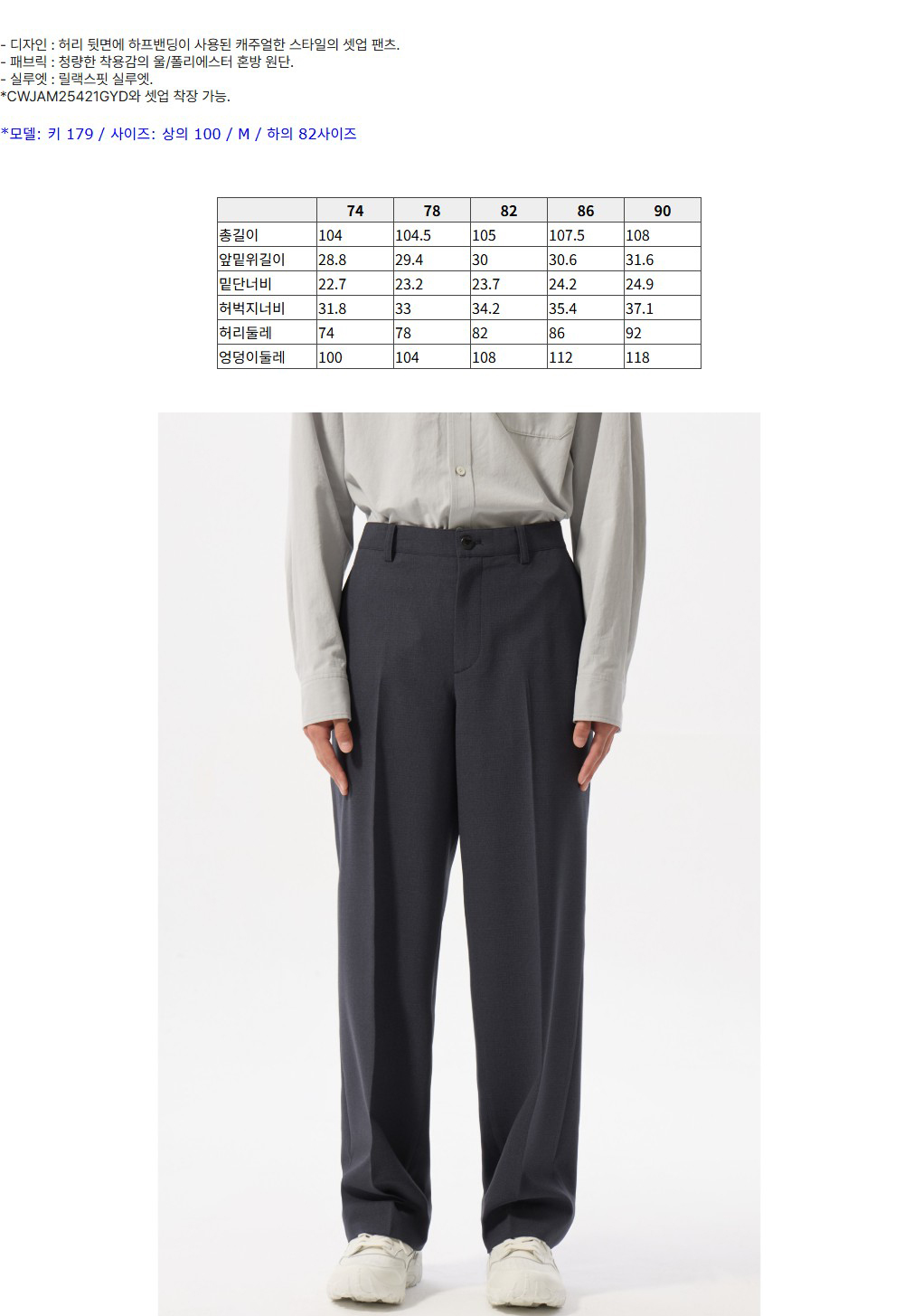 커스텀멜로우 릴렉스 핏 셋업 팬츠 다크 그레이