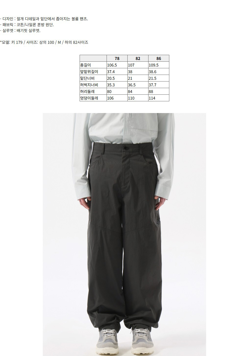 커스텀멜로우 볼륨 턱 팬츠 다크 그레이