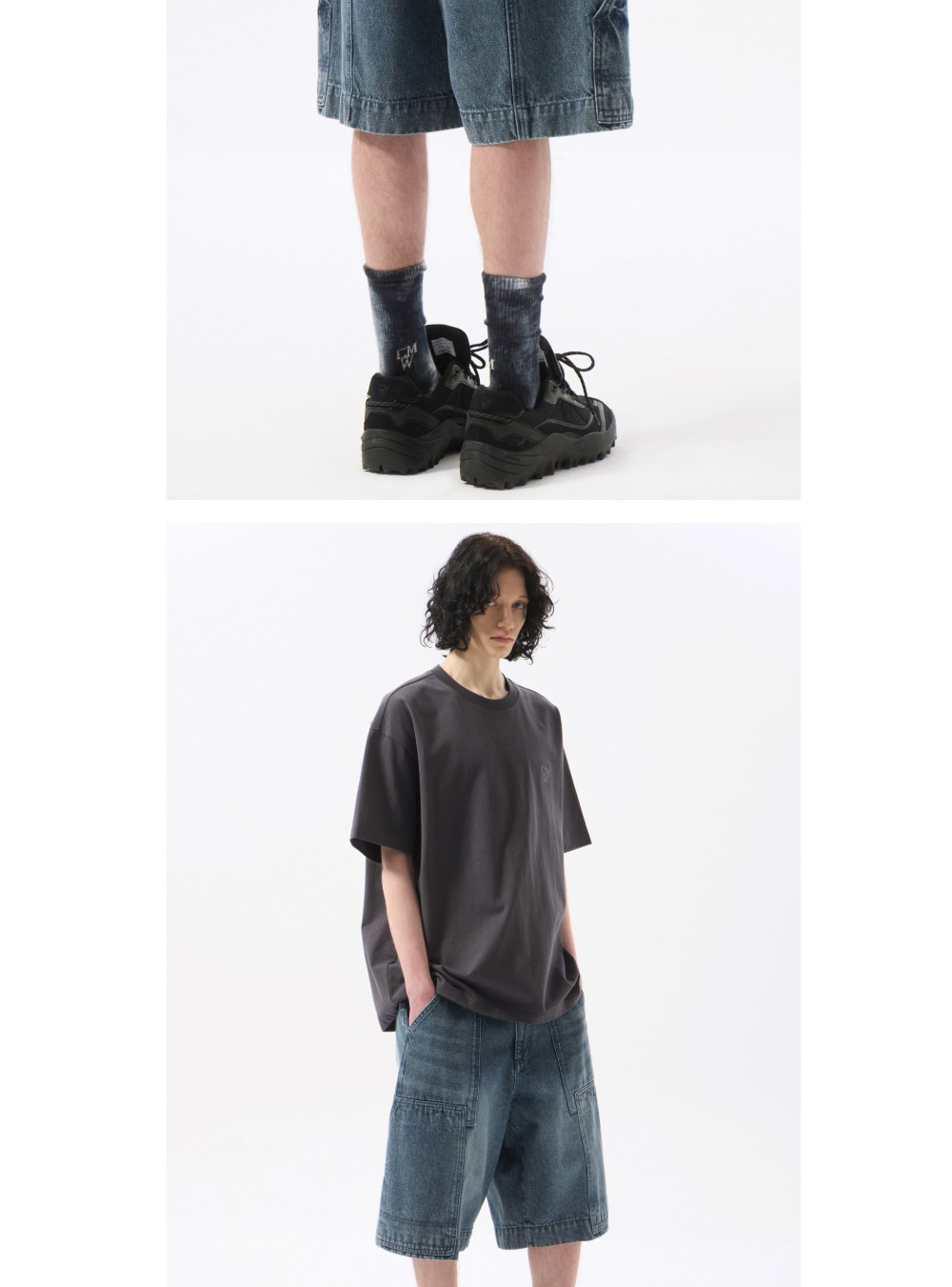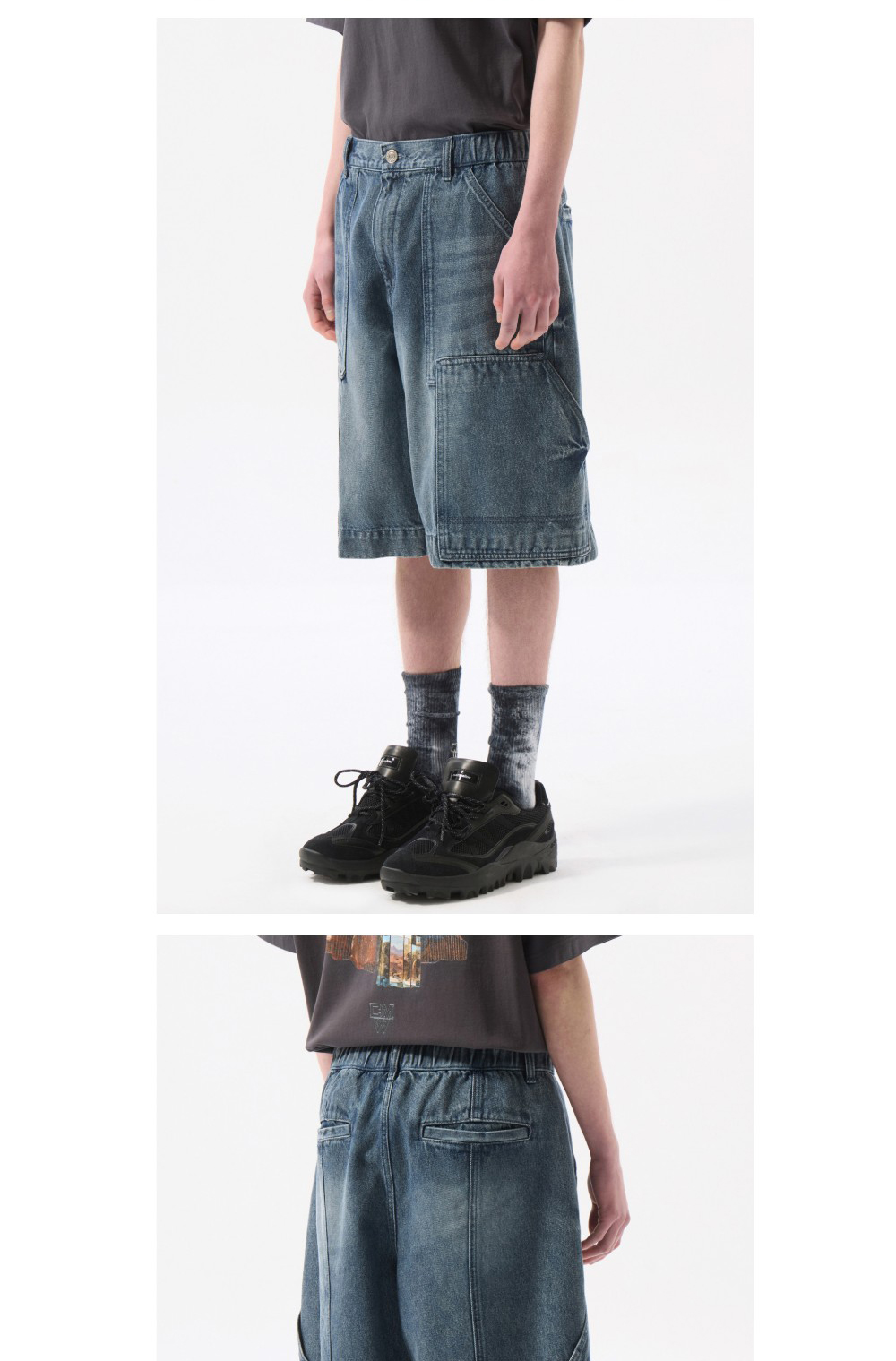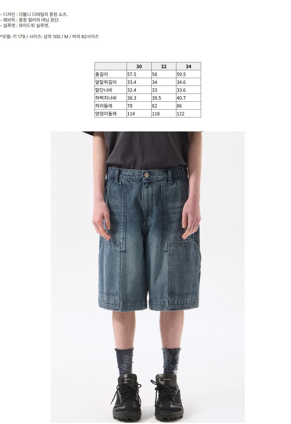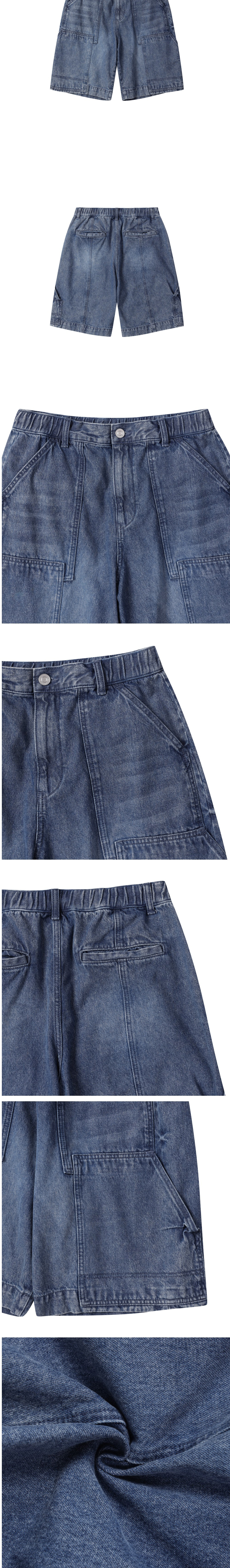 커스텀멜로우 더블 니 데님 쇼츠 블루