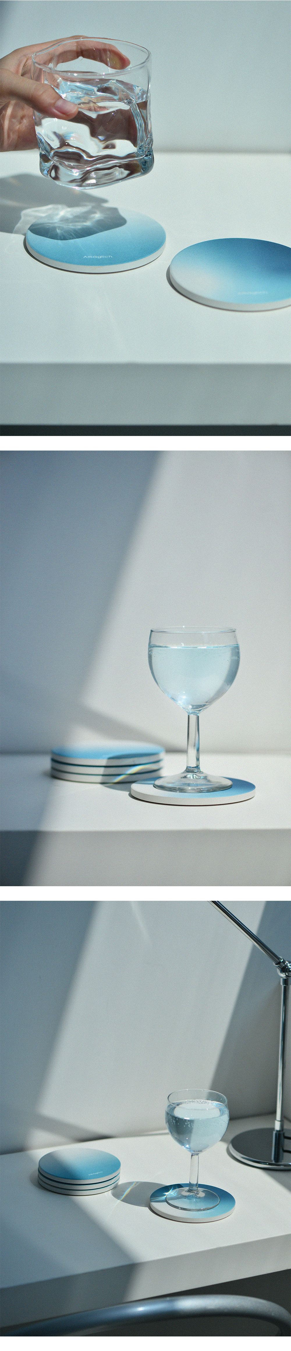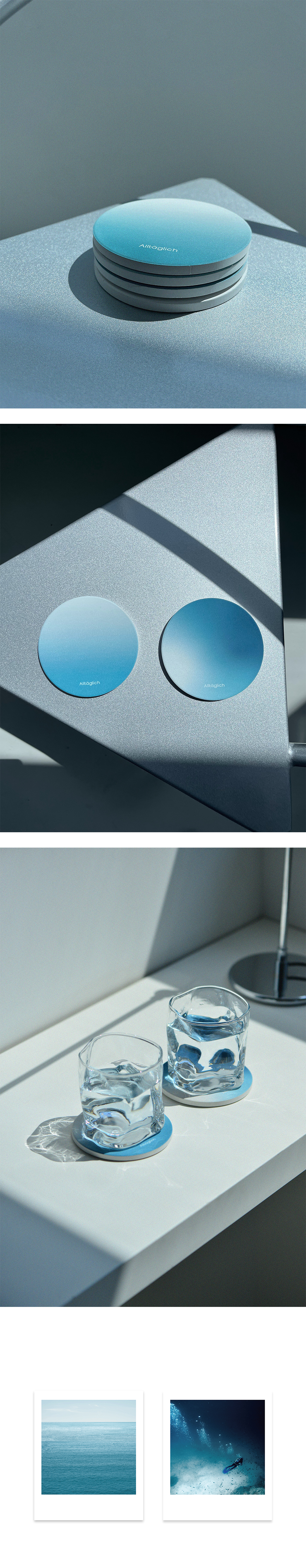바다위 수평선과 깊은 바닷속에서 영감을 받아 제작되었습니다. 끝없이 펼쳐진 수평선의 고요한 색. 깊은 바닷속으로 들어갈수록 더 짙어지는 어둠과 그 사이로 들어오는 밝은 빛, 고요하고 신비로운 바다의 색을 담은 코스터입니다.