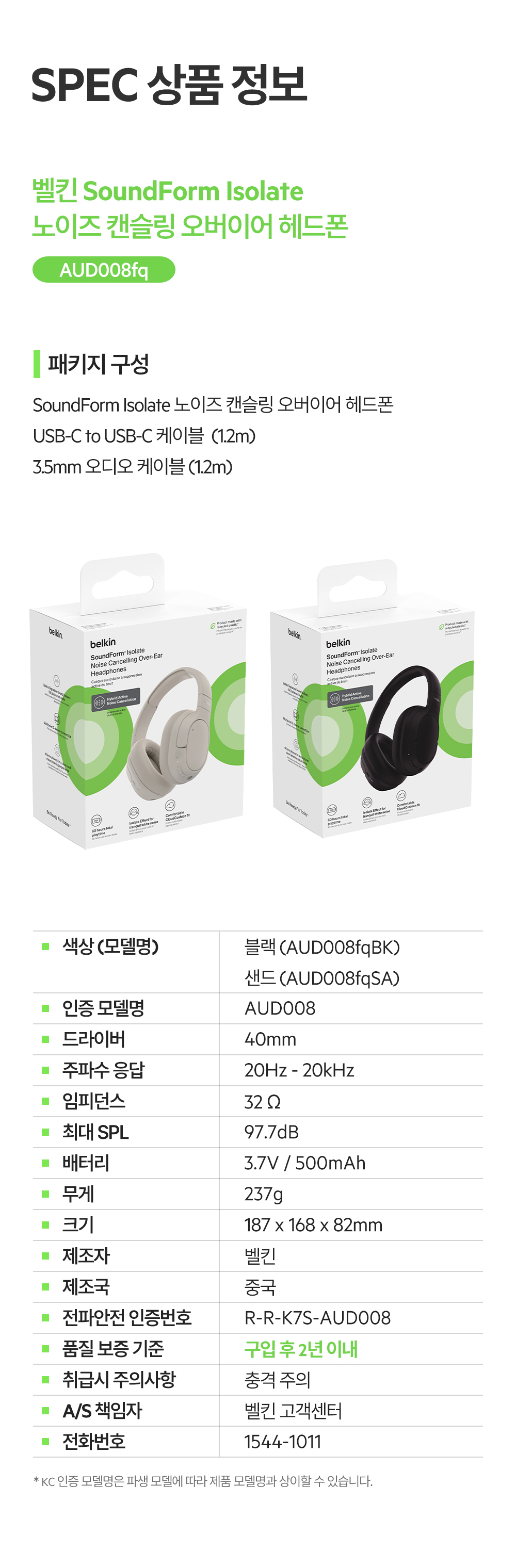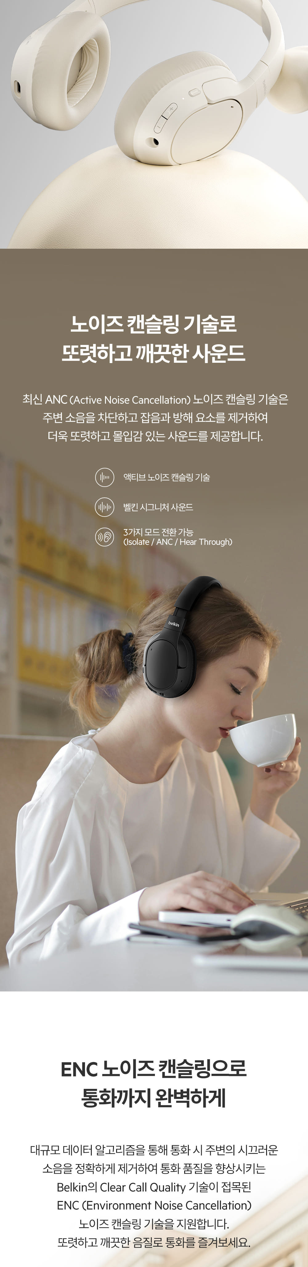 벨킨 사운드폼 아이솔레이트 노이즈캔슬링 무선 블루투스 헤드폰 AUD008 블랙