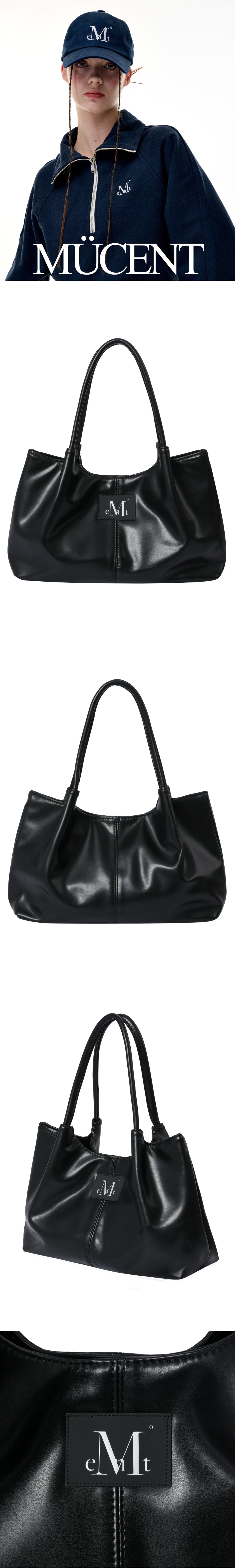 MUCENT Epee Middle Stitch Leather Tote Bag Black
