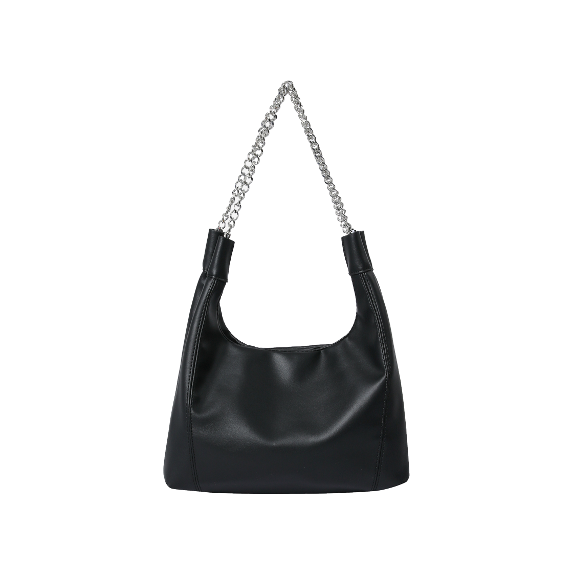 MUCENT Glady Silver Chain Leather Shoulder Bag Black