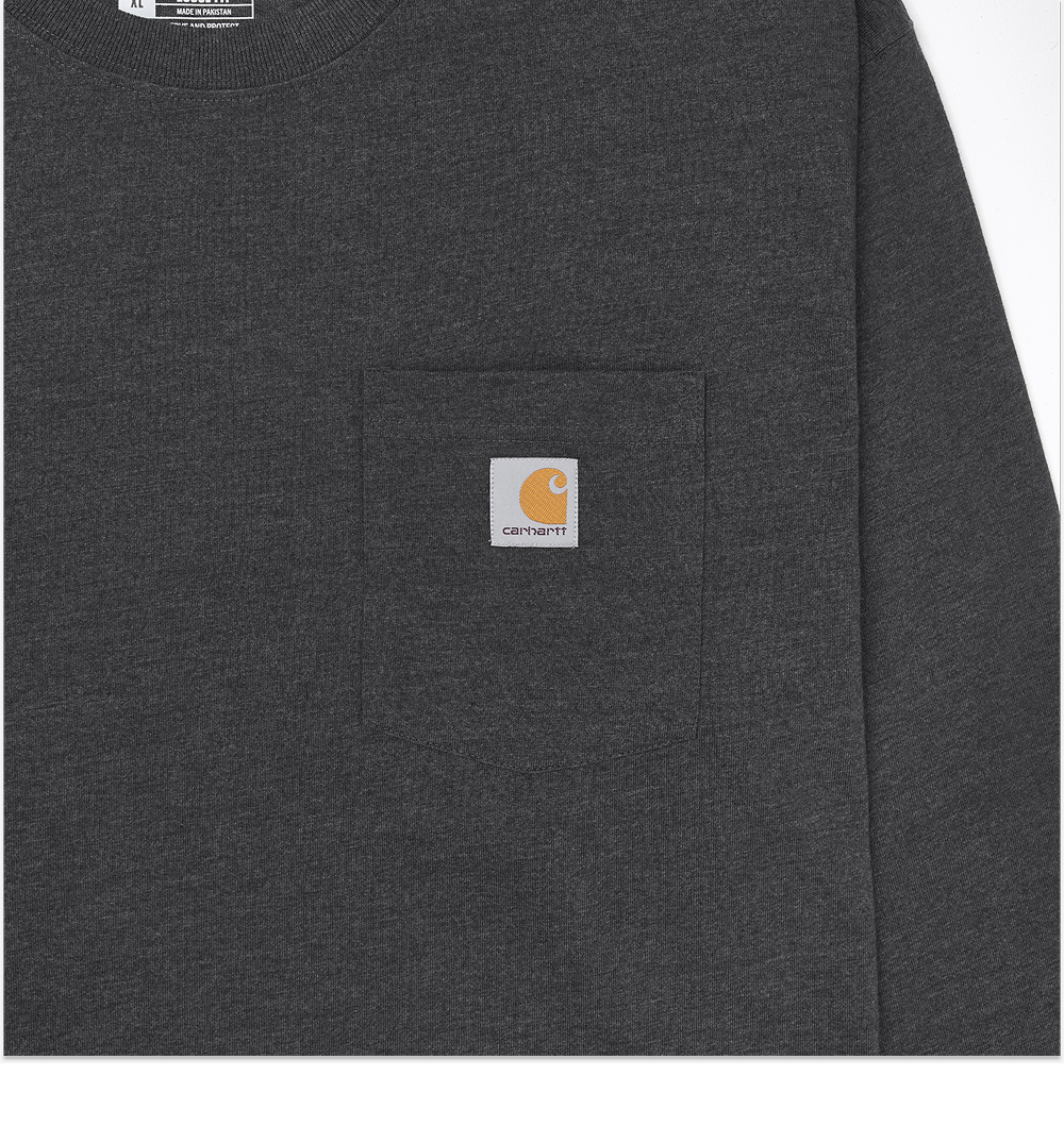 칼하트 루즈핏 헤비웨이트 레귤러 롱슬리브 포켓 티셔츠 카본 헤더