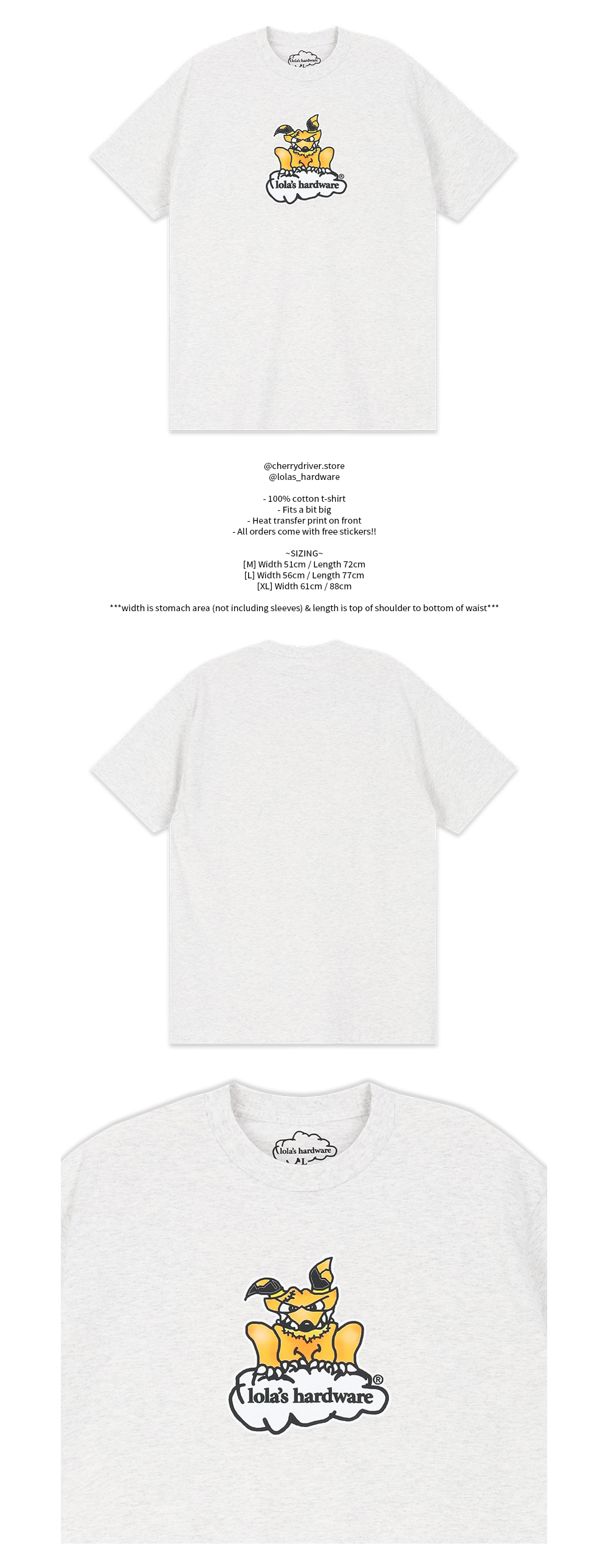 @cherrydriver.store @lolas_hardware - 100% cotton t-shirt - Fits a bit big - Heat transfer print on front - All orders come with free stickers!! ~SIZING~ [M] Width 51cm / Length 72cm [L] Width 56cm / Length 77cm [XL] Width 61cm / 88cm ***width is stomach area (not including sleeves) & length is top of shoulder to bottom of waist***