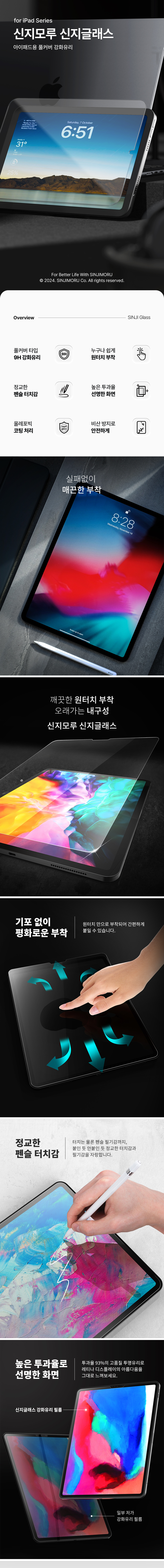 신지모루 풀커버 고경도 코팅 원터치 부착 강화유리 액정보호필름 아이패드 미니 에어 프로 10 9 8 7 6 5세대
