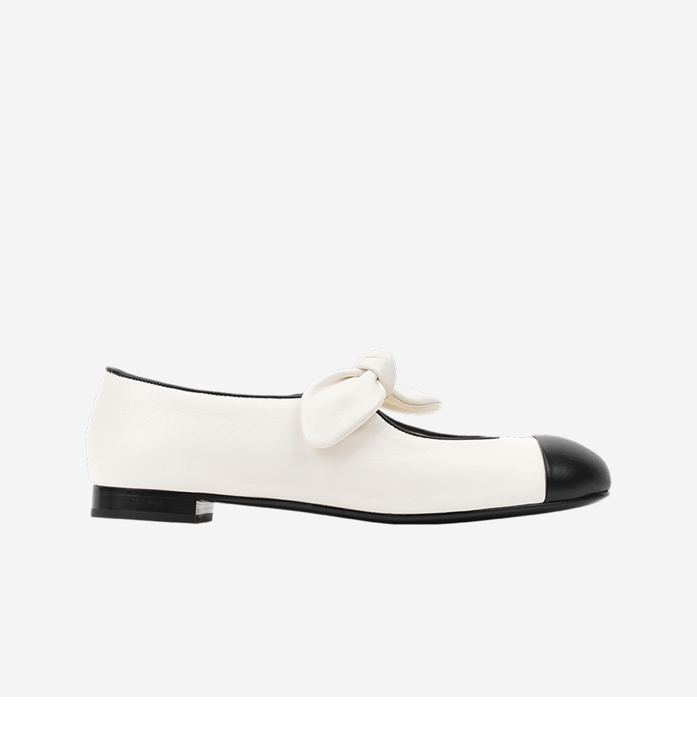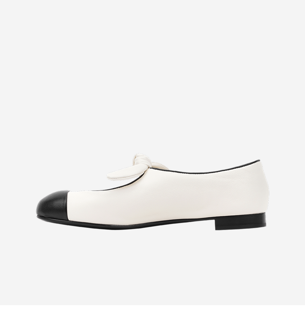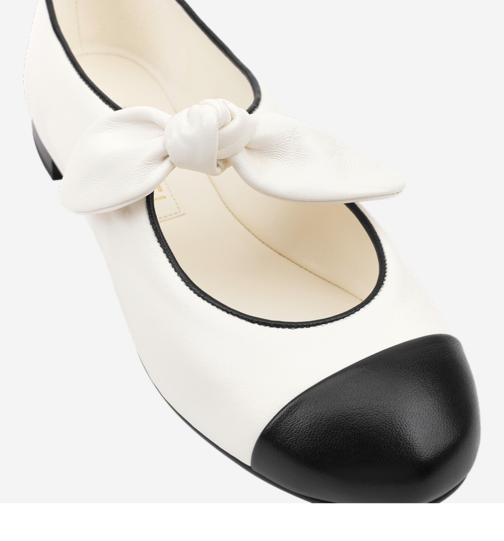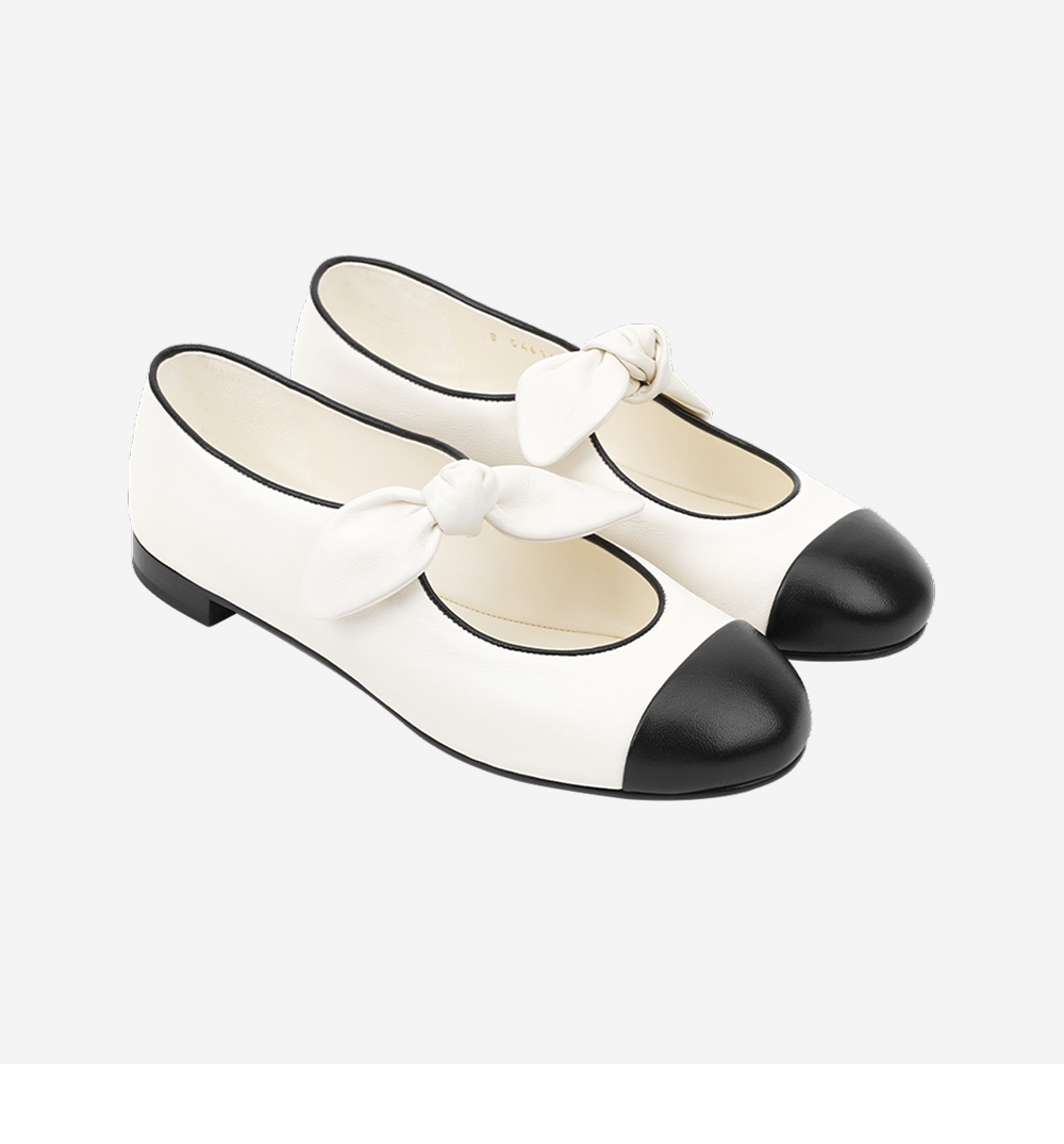 (W) 샤넬 메리 제인 램스킨 & 화이트 블랙