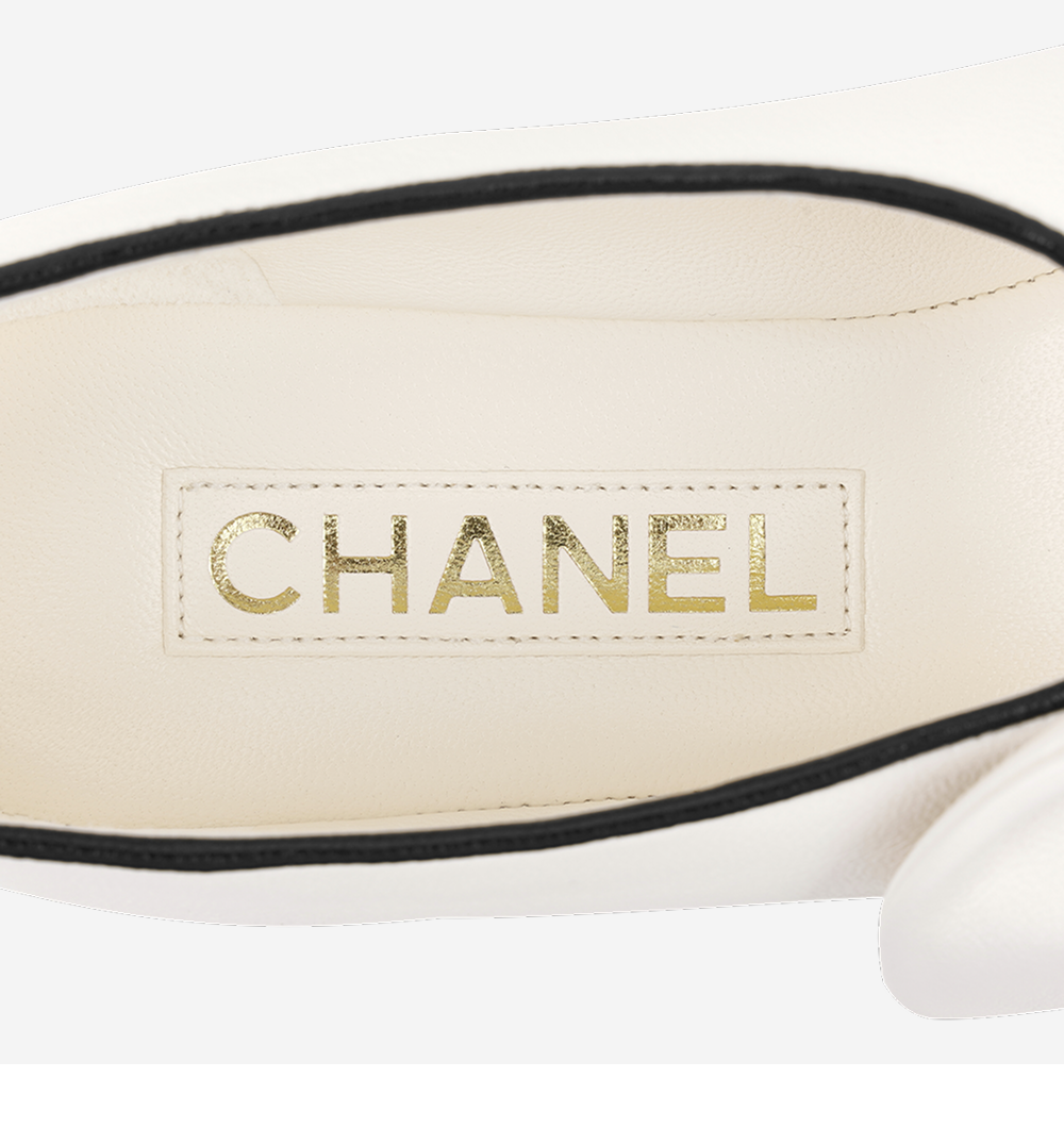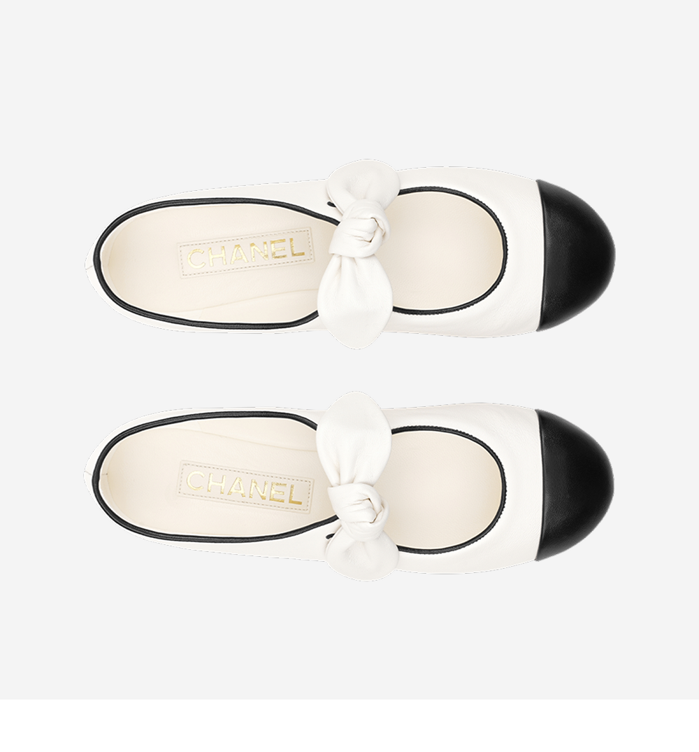 (W) Chanel Mary Janes Lambskin & White Black